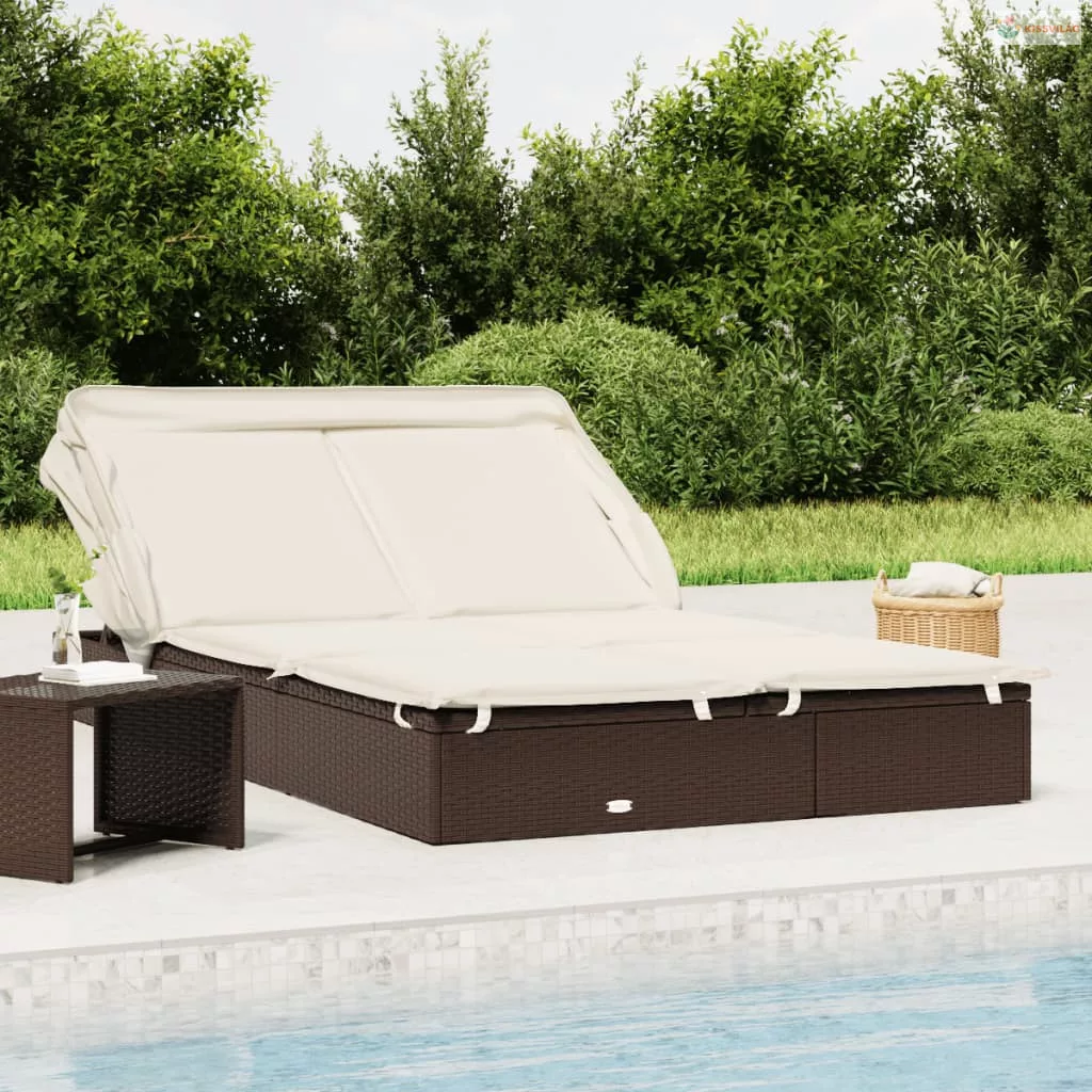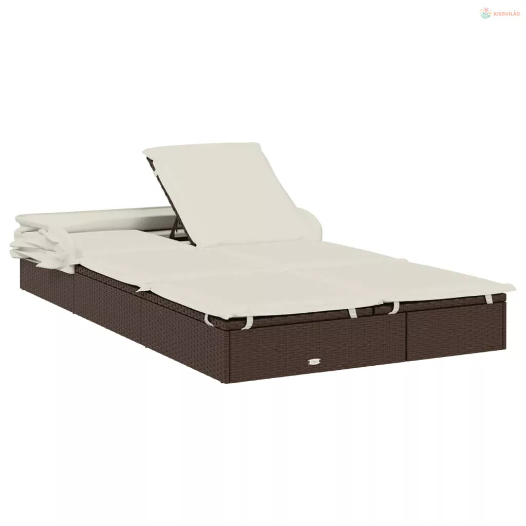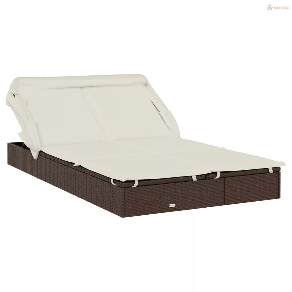 2 személyes barna polyrattan napágy tetővel 213 x 118 x 97 cm