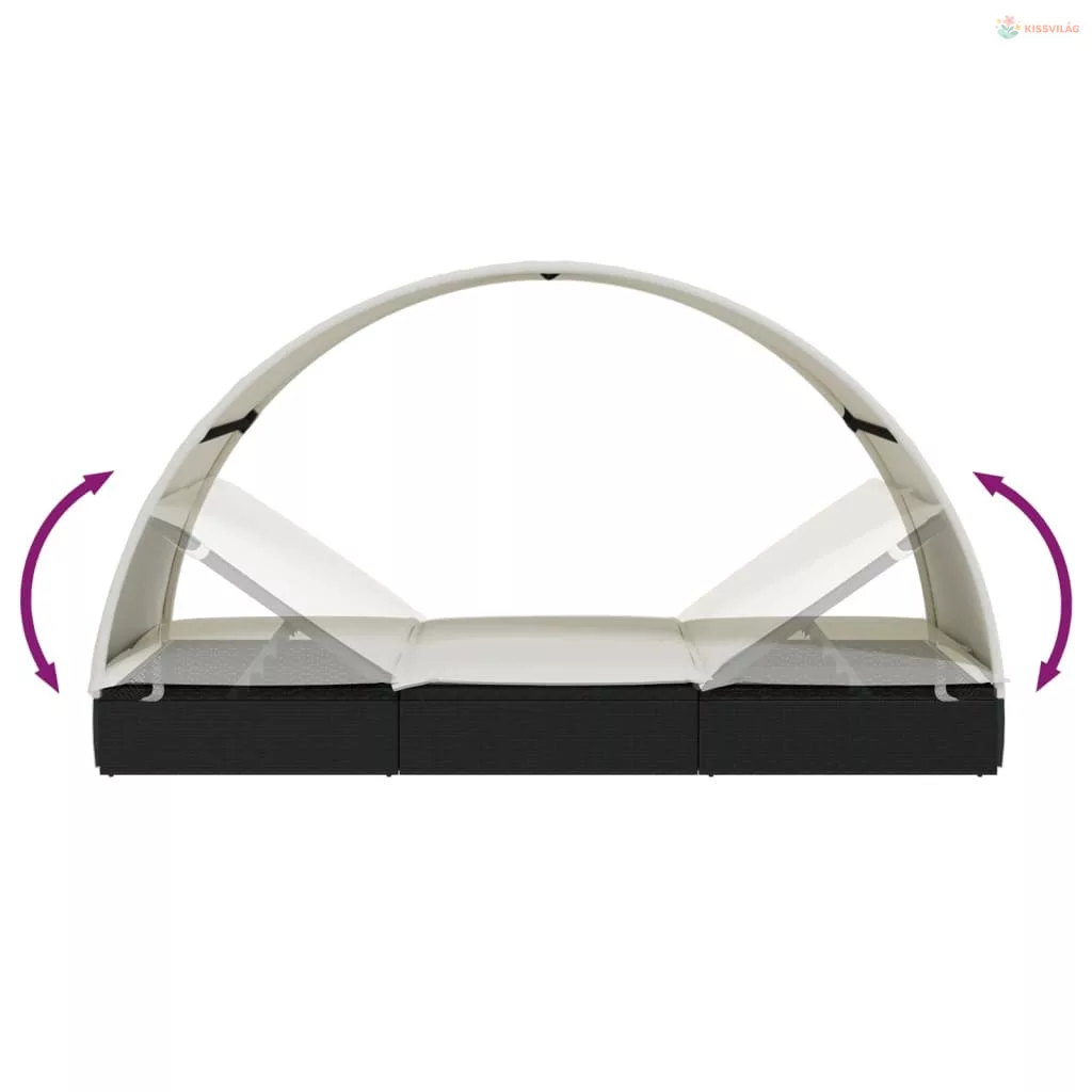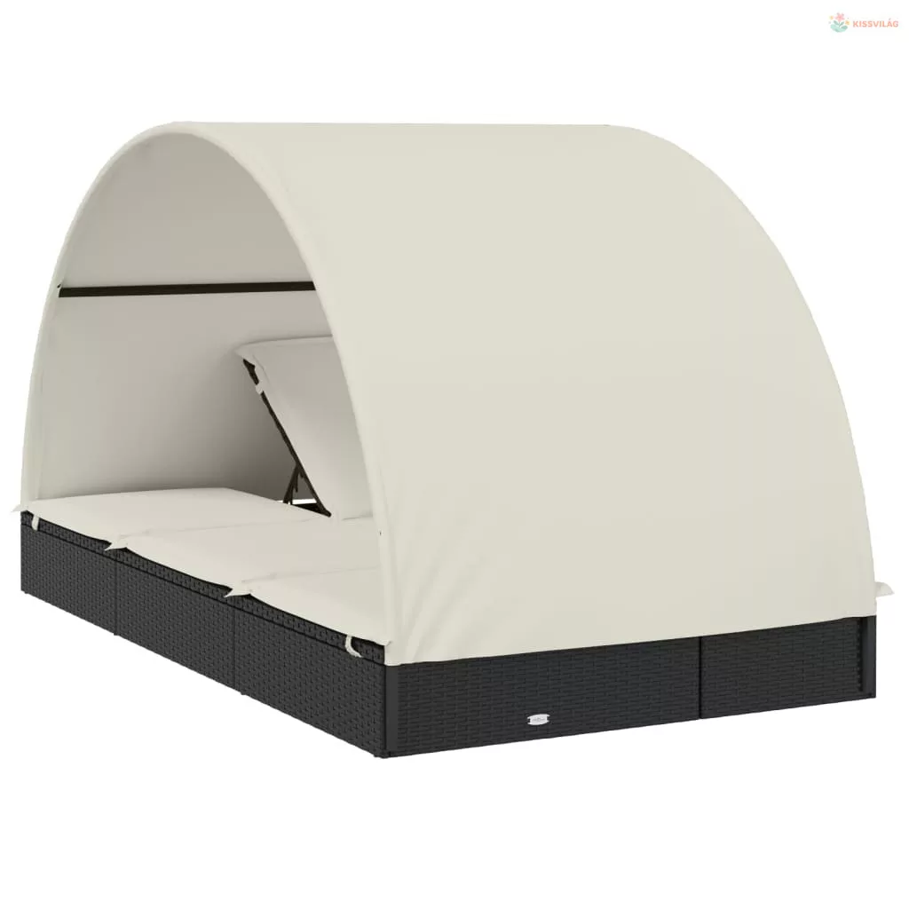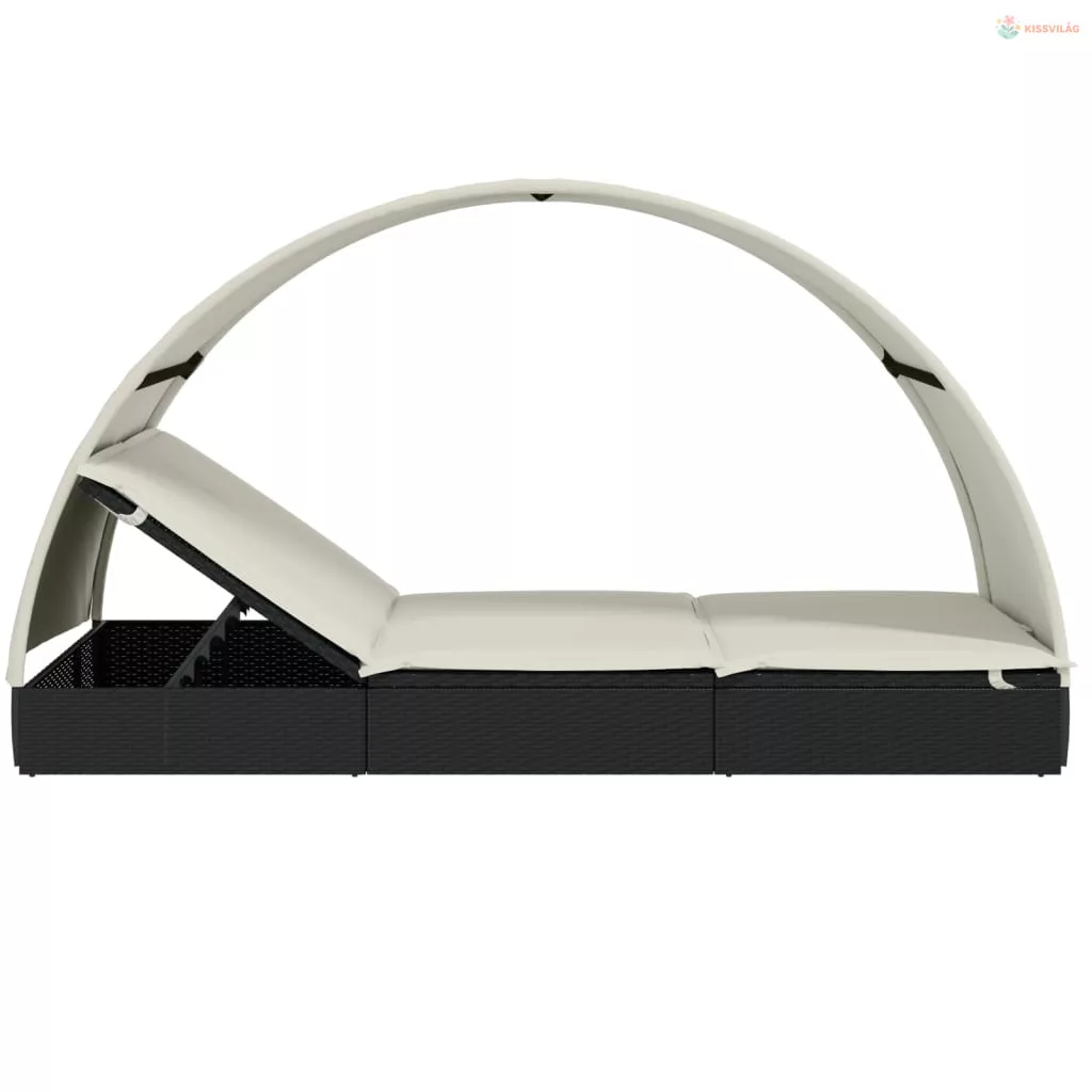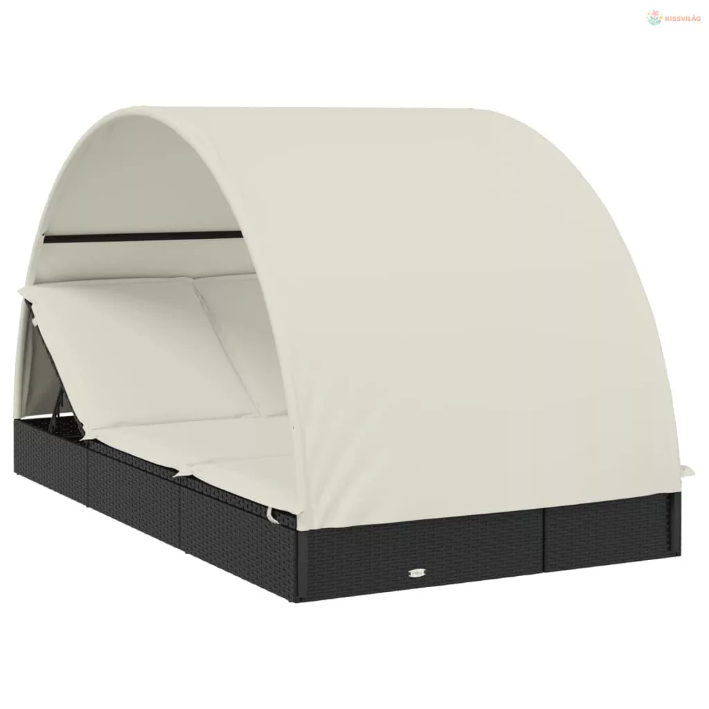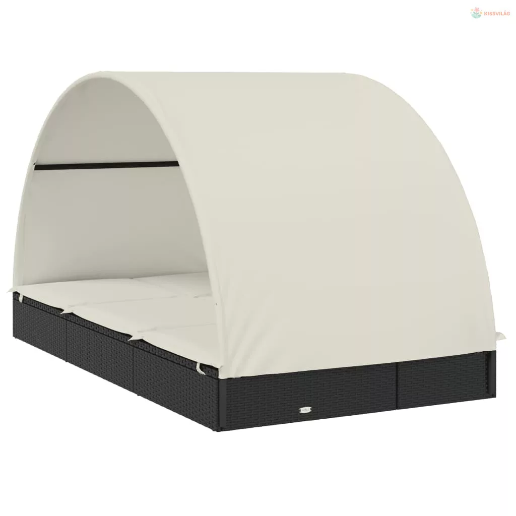 2 személyes fekete polyrattan napágy kerek tetővel 213x118x97cm