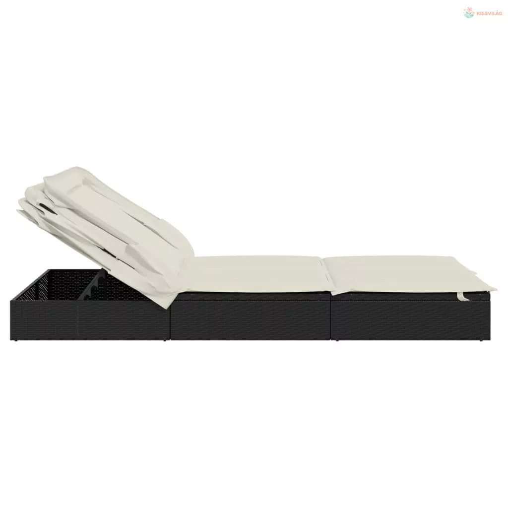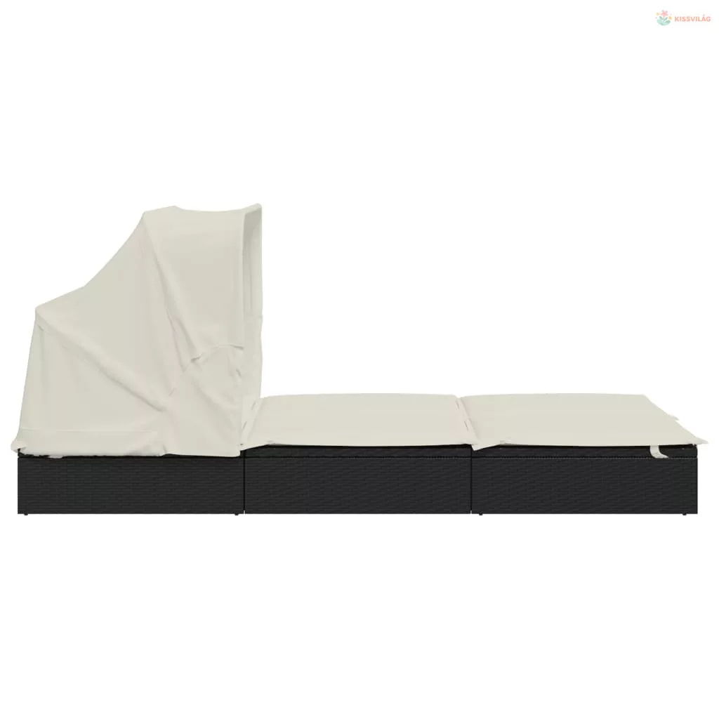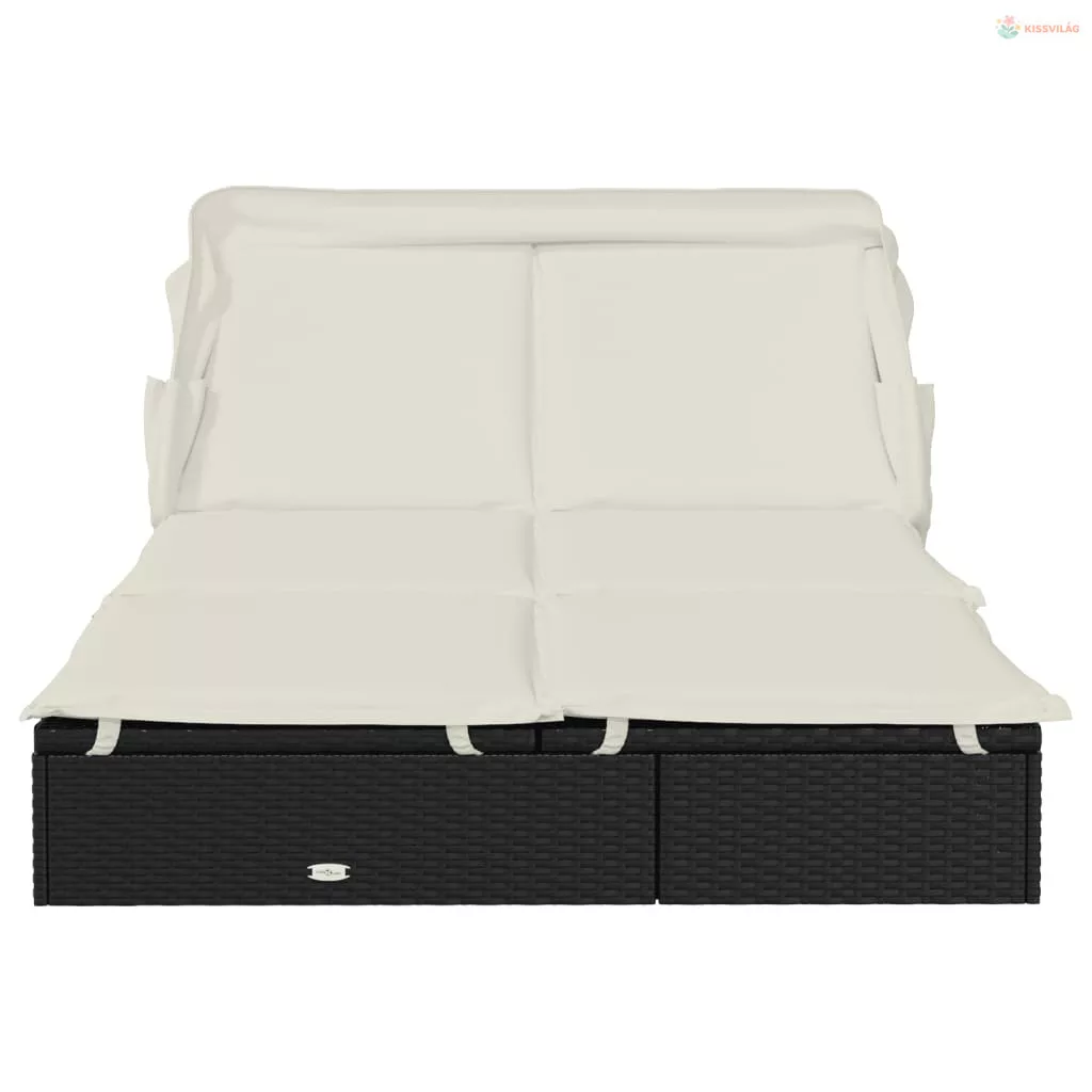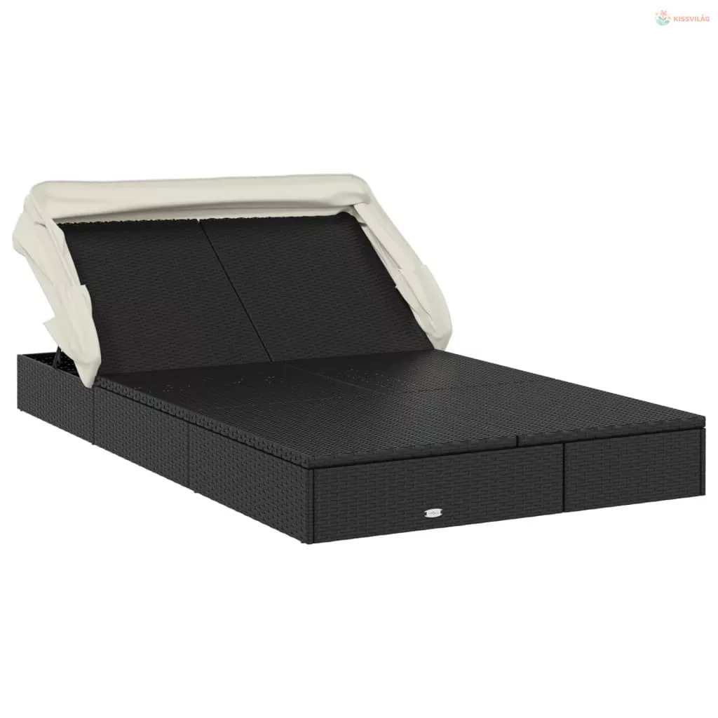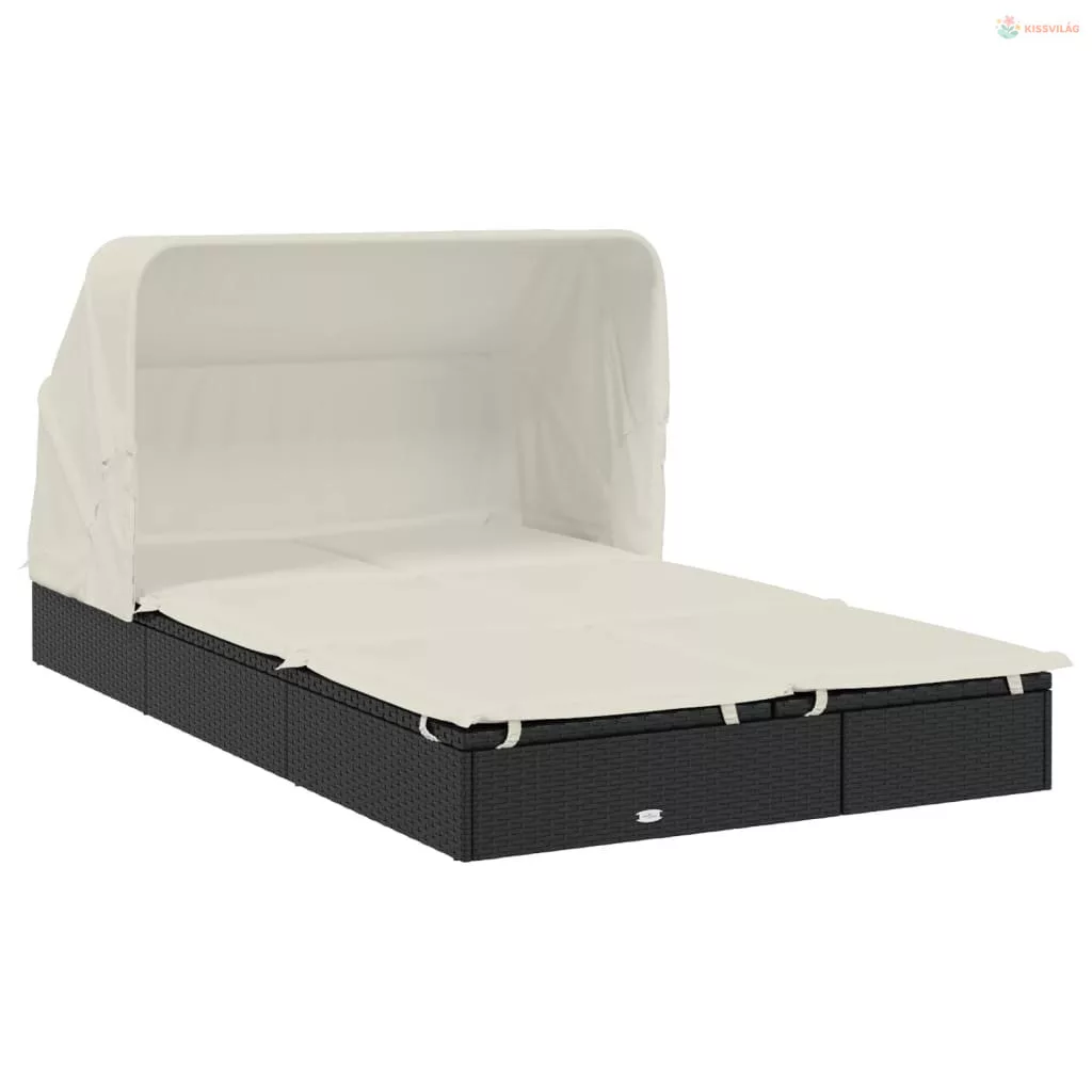 2 személyes fekete polyrattan napágy tetővel 213 x 118 x 97 cm