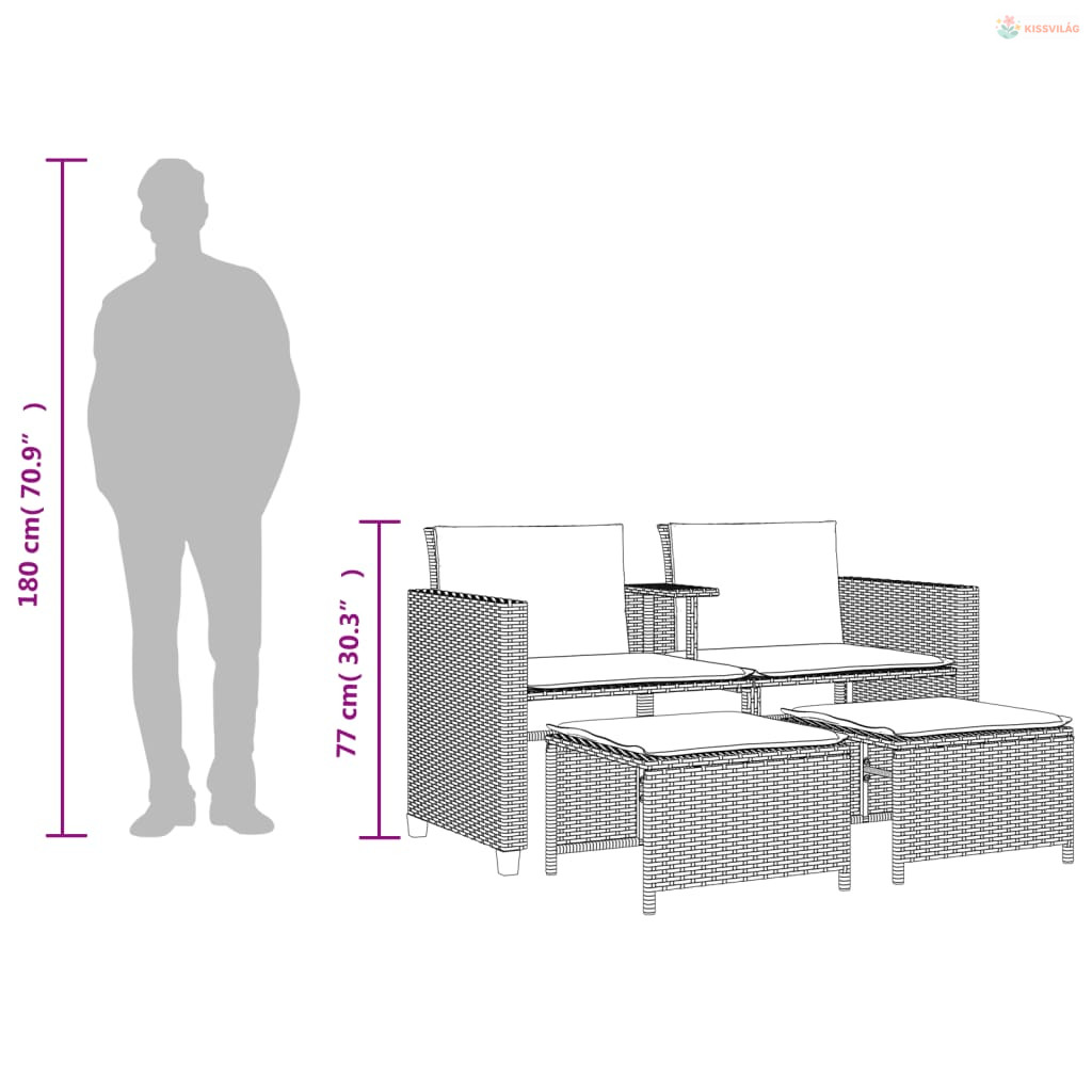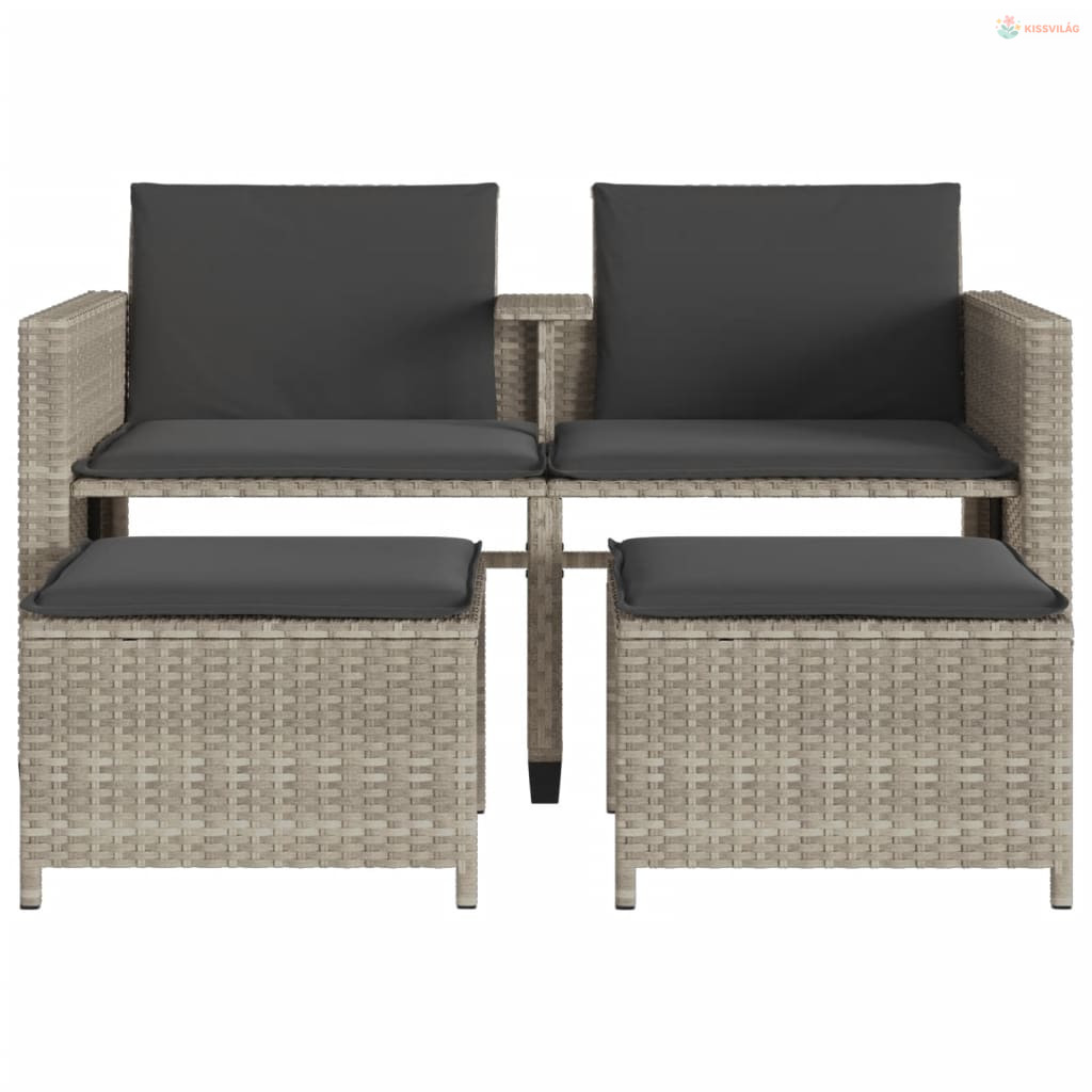 2 személyes szürke polyrattan kerti kanapé asztallal/székkel