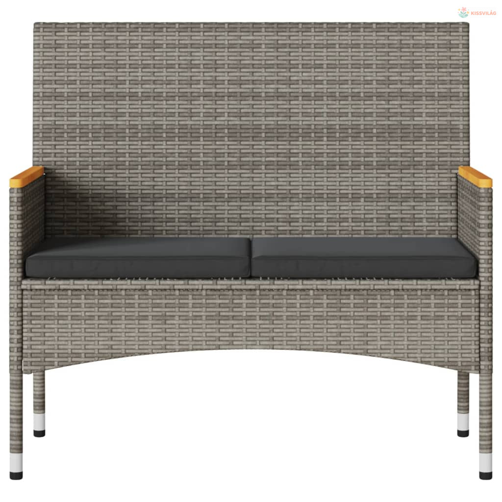 2 személyes szürke polyrattan kerti pad párnákkal és asztallal