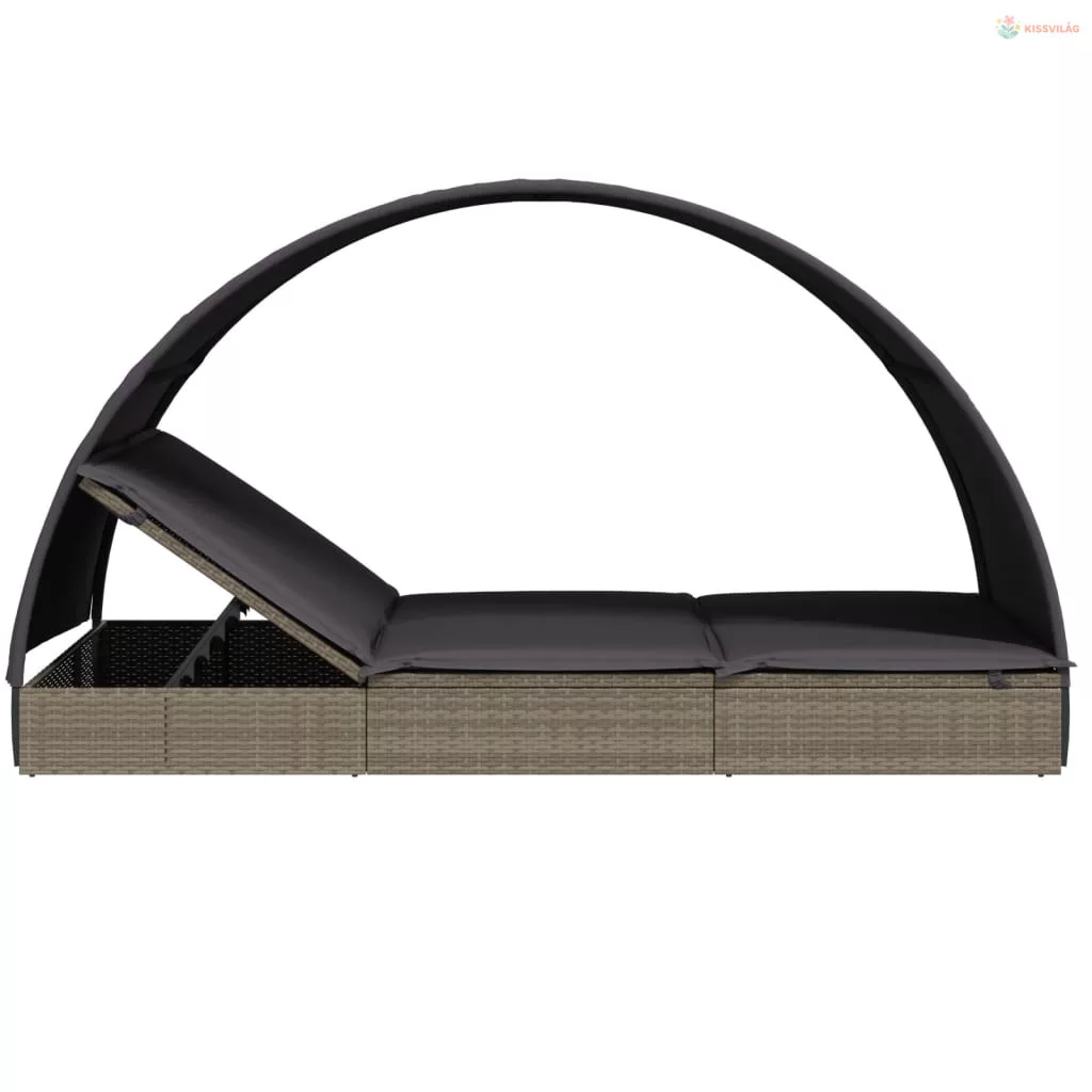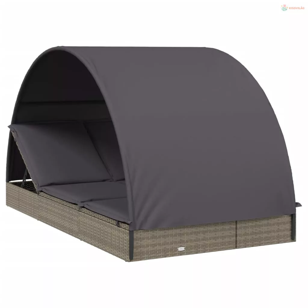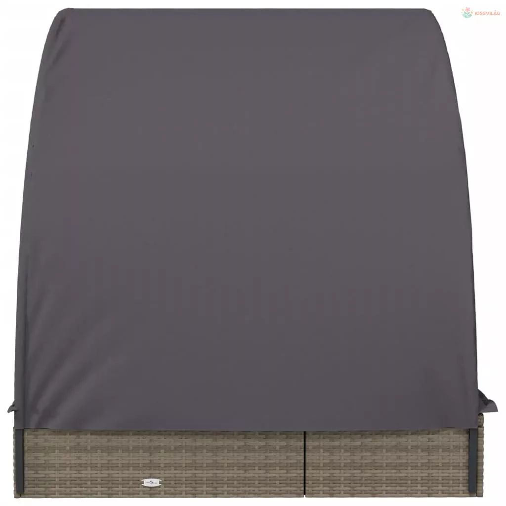 2 személyes szürke polyrattan napágy kerek tetővel 211x112x140
