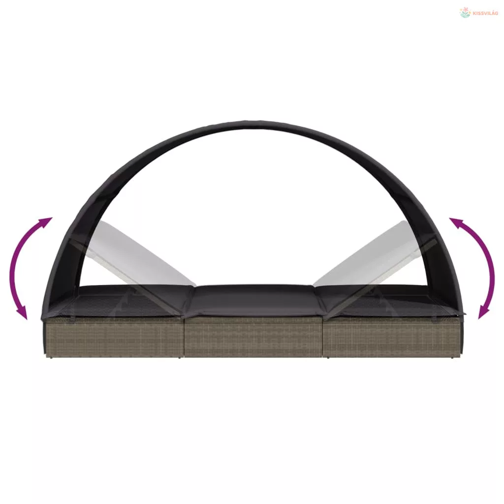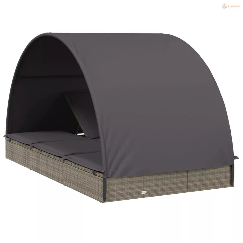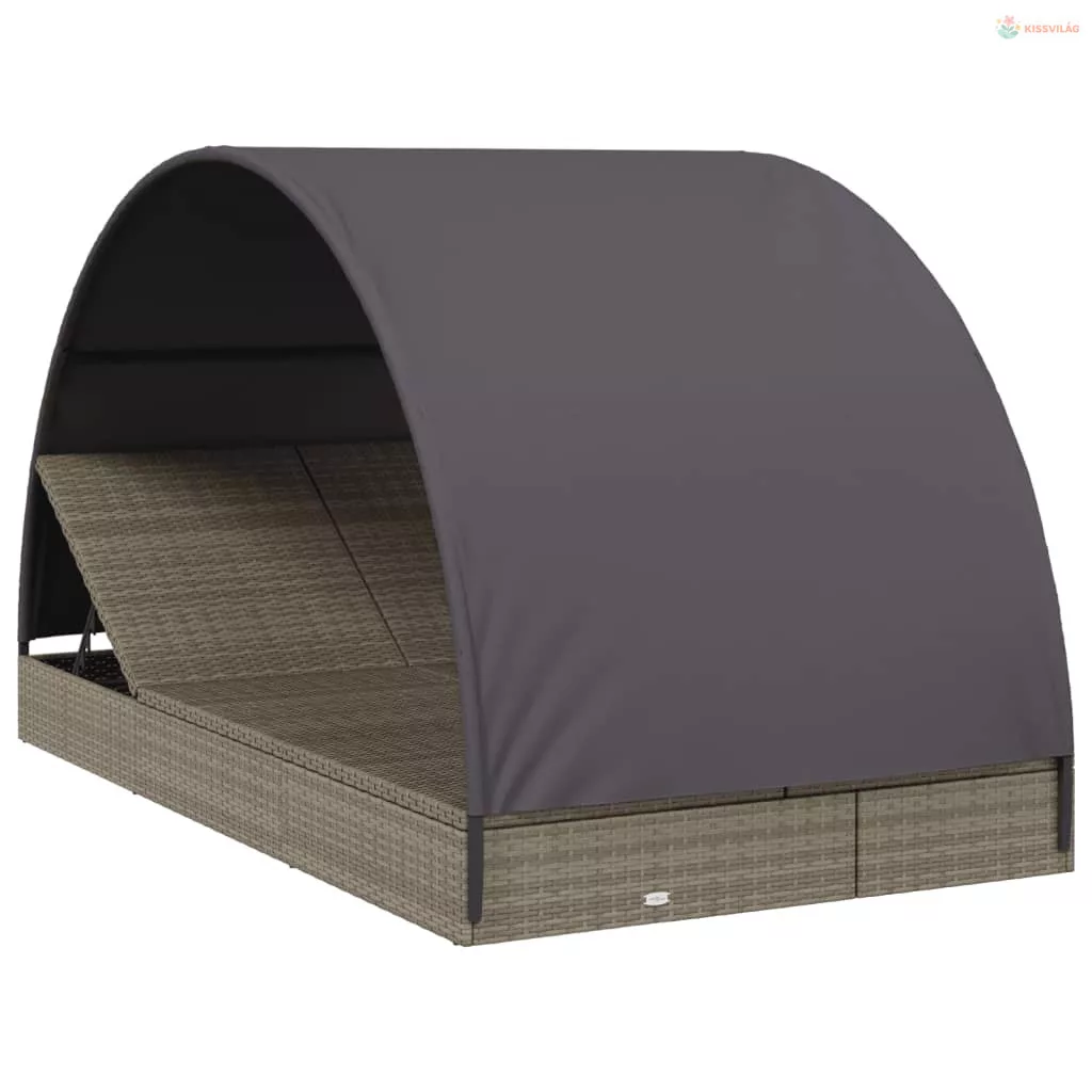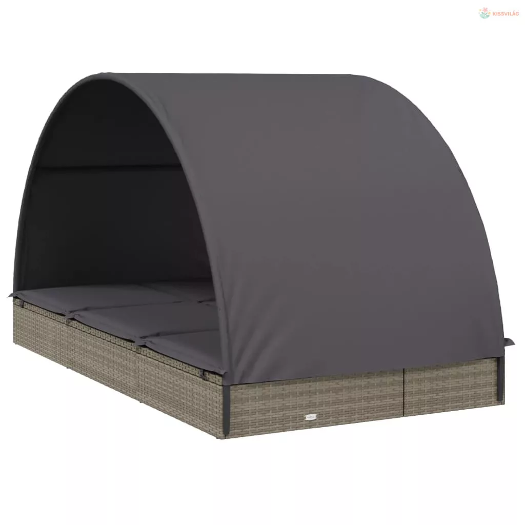 2 személyes szürke polyrattan napágy kerek tetővel 211x112x140