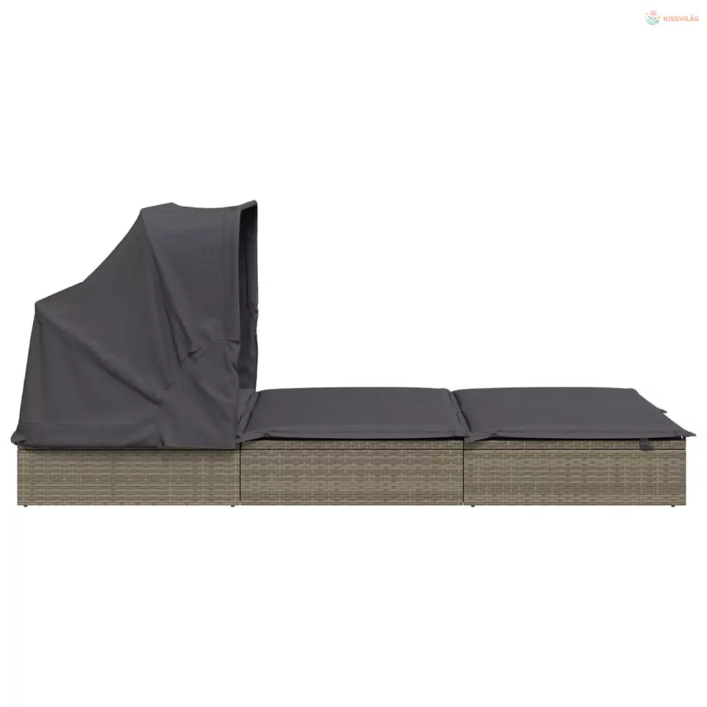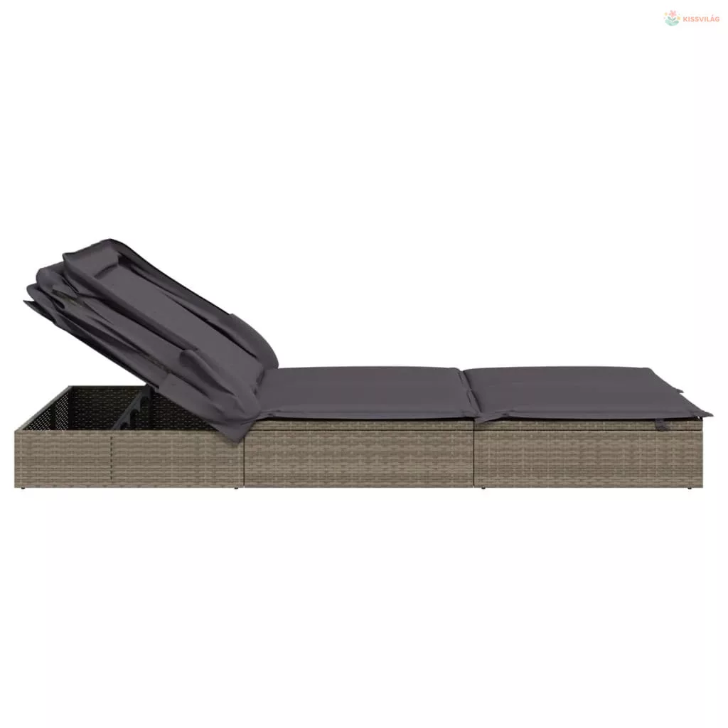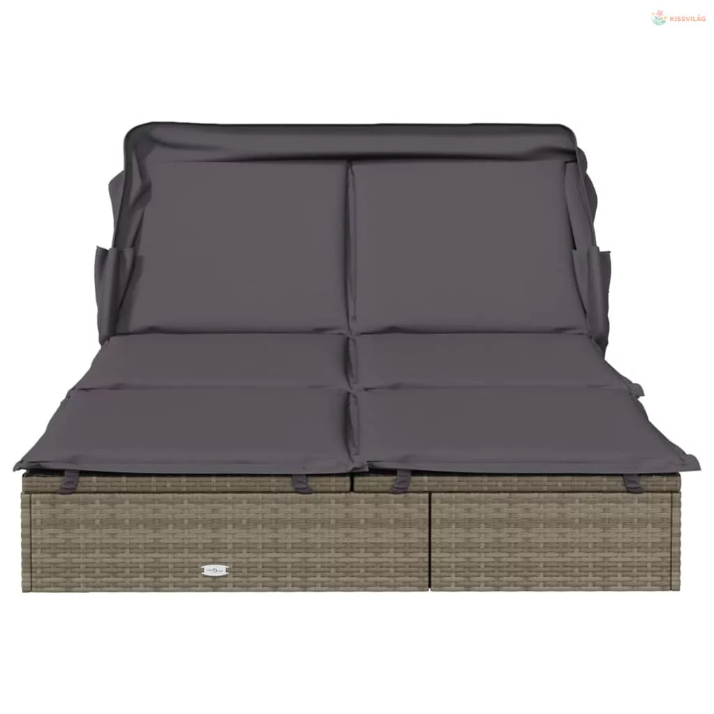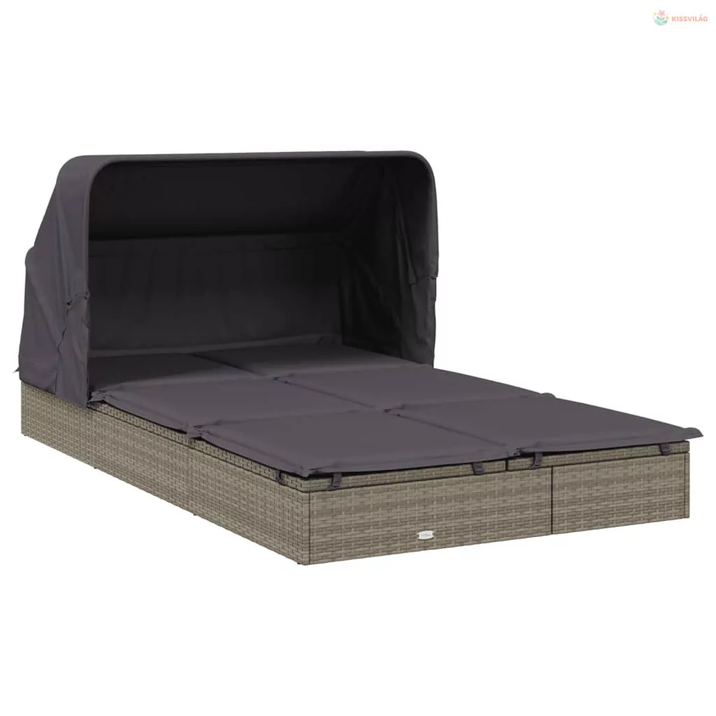 2 személyes szürke polyrattan napágy tetővel 213 x 118 x 97 cm