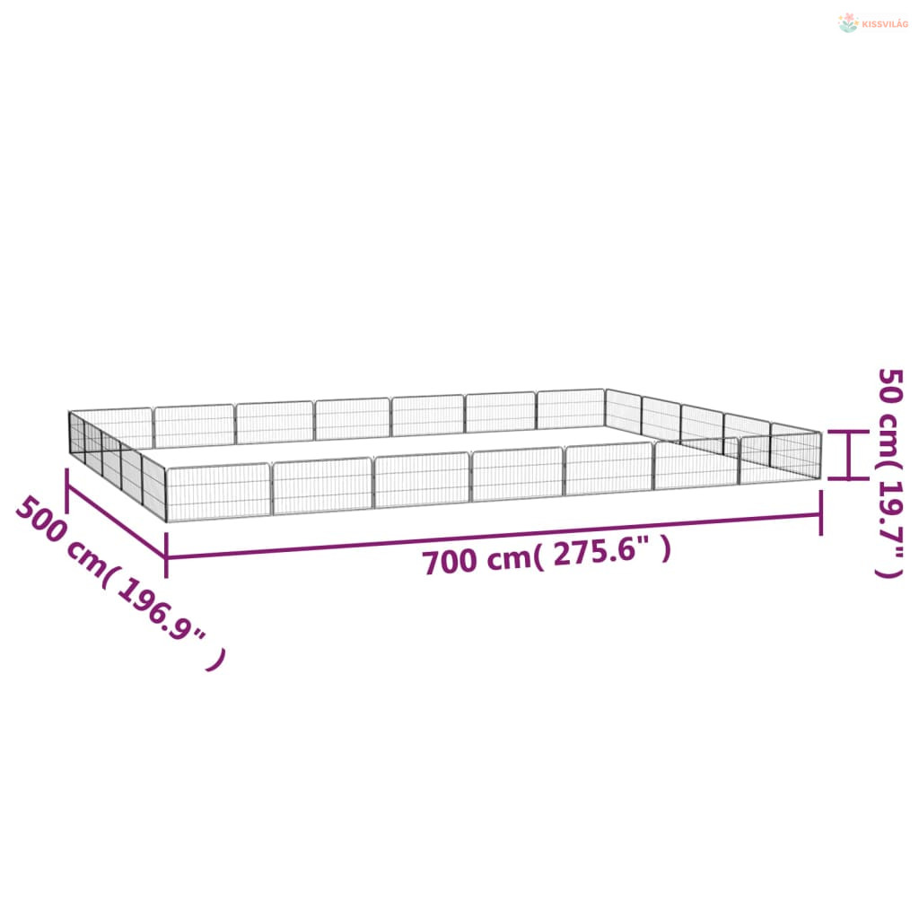 24 paneles fekete porszórt acél kutyakennel 100 x 50 cm