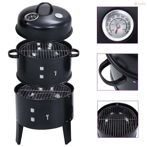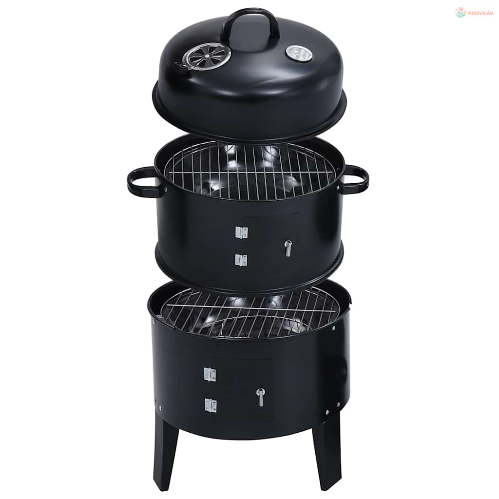 Ezzel a 3 az 1-ben faszenes füstölő grillsütővel grillezhet, főzhet és füstölhet. A grillsütő ideális kültéri eseményekhez, például partikhoz, kerti tüzeléshez, családi grillezéshez vagy kempingezéshez.