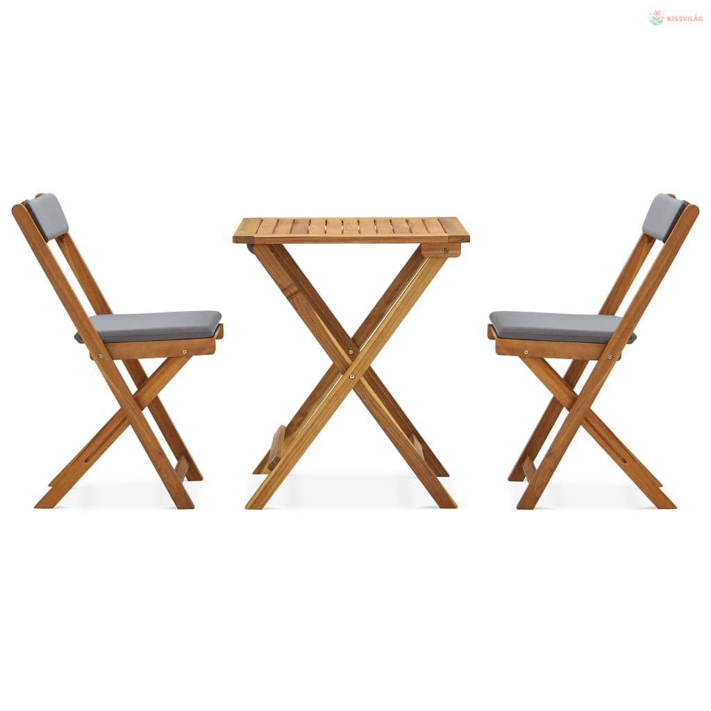3 darabos összecsukható tömör akácfa bisztrószett párnákkal
