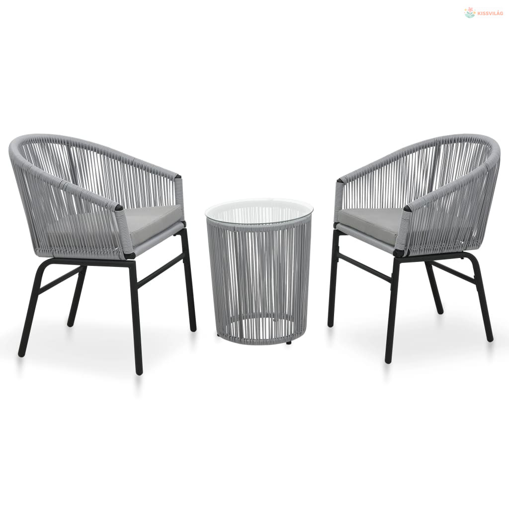 3 darabos szürke PE rattan bisztrószett párnával