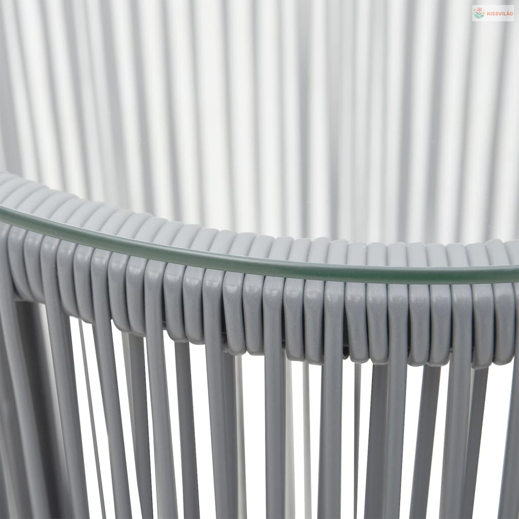 Ez a finom porszórt acélvázra szőtt PE-rattanból készült bisztró szett stabil és ellenáll a rossz időjárási körülményeknek és az UV-sugaraknak. Az asztallap átlátszó edzett üvegből készült, könnyen tisztítható. A kisasztal lehetővé teszi, hogy könnyen elérhető helyen tartsa az ételeket, könyveket, italokat. Ezenkívül a párnák extra kényelmet és támaszt nyújtanak a pihenés során.