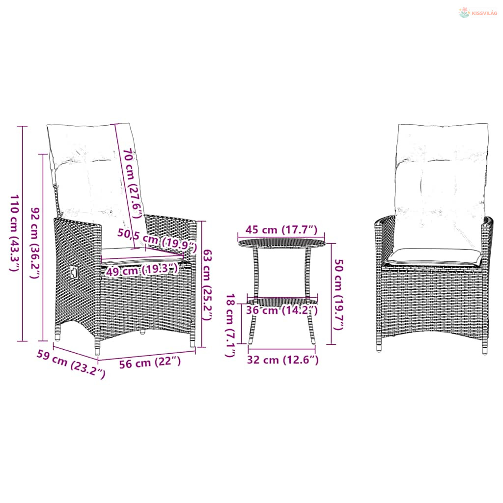 • Ülő méretek: 56 x 59 x 92 cm (Sz x M x Ma)
