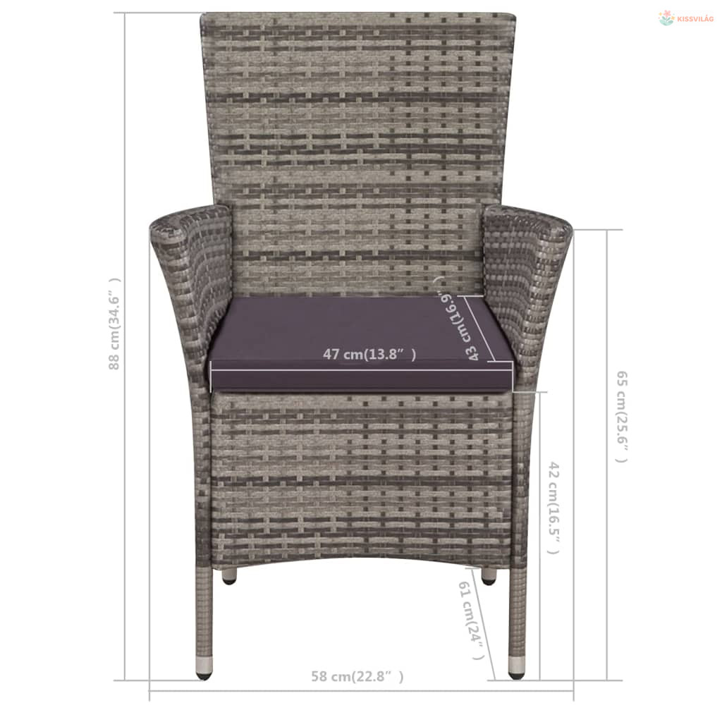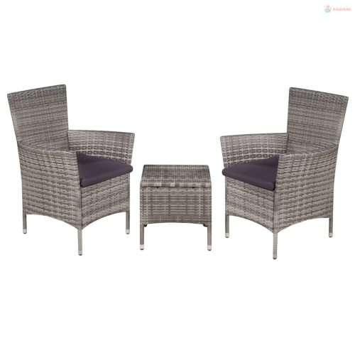 3 darabos szürke polyrattan bisztrószett