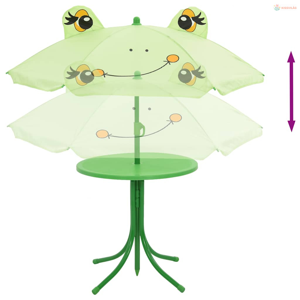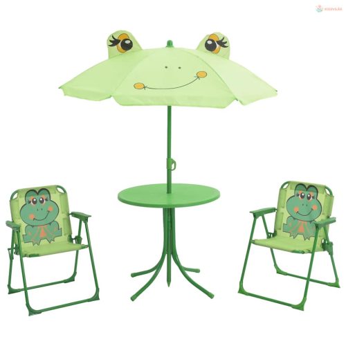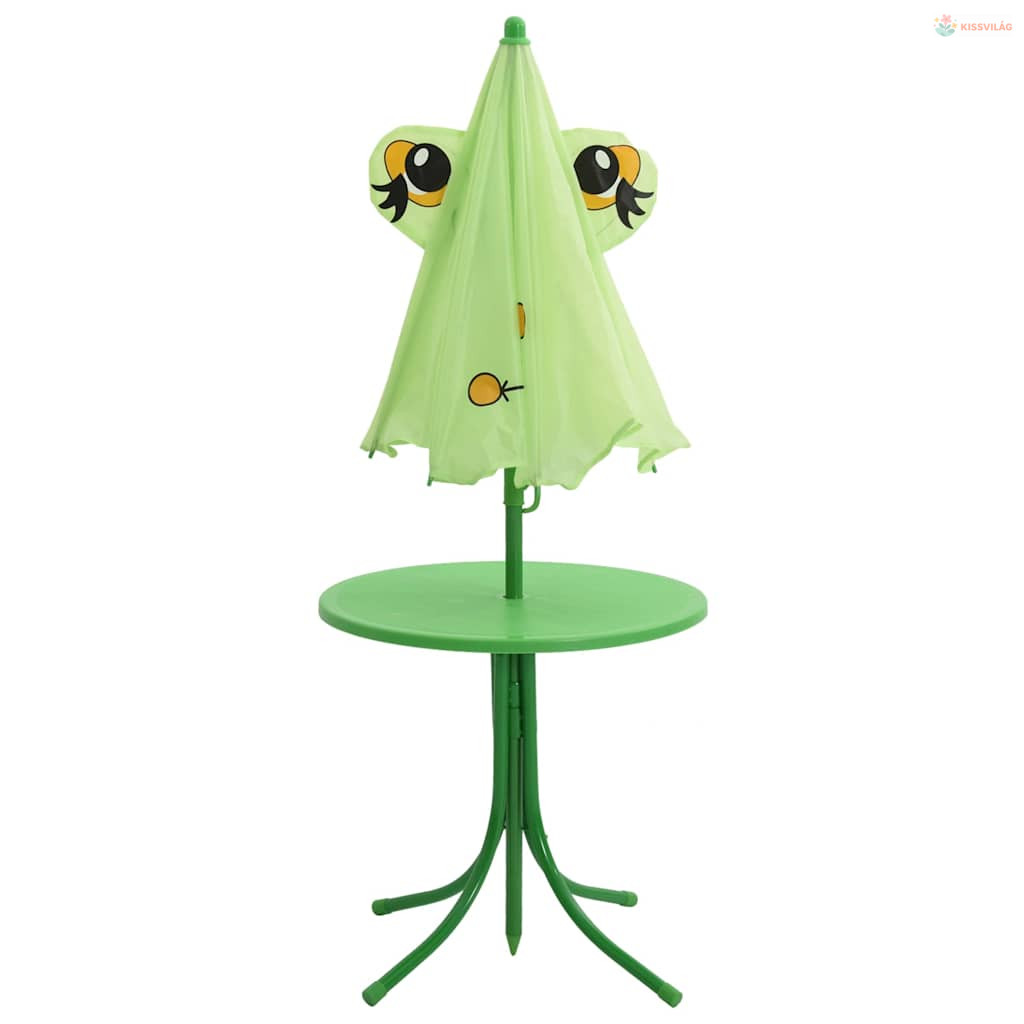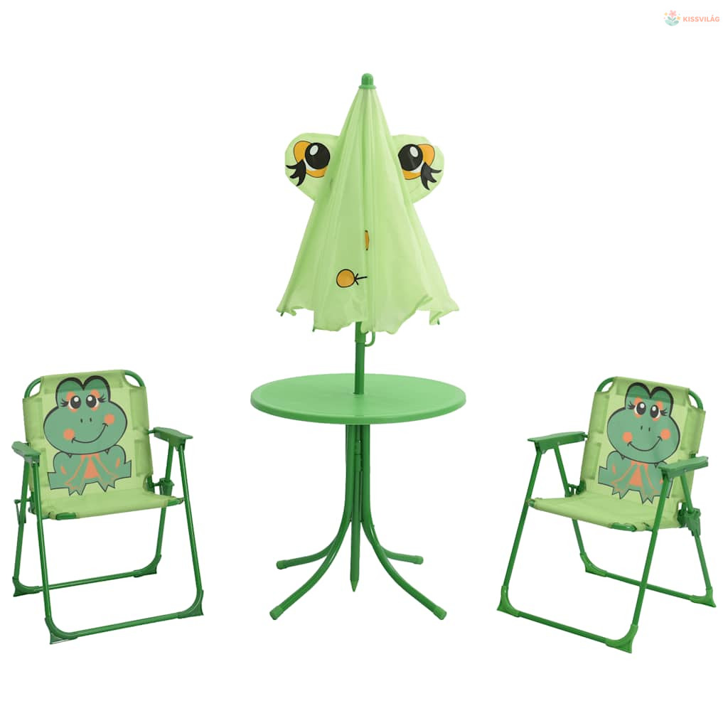 3 darabos zöld kerti gyerek bisztrószett napernyővel