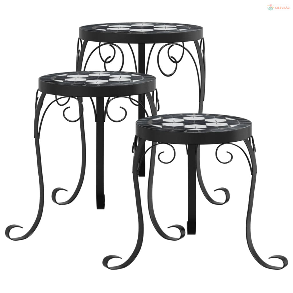 3 db fekete és fehér kerámia növényállvány