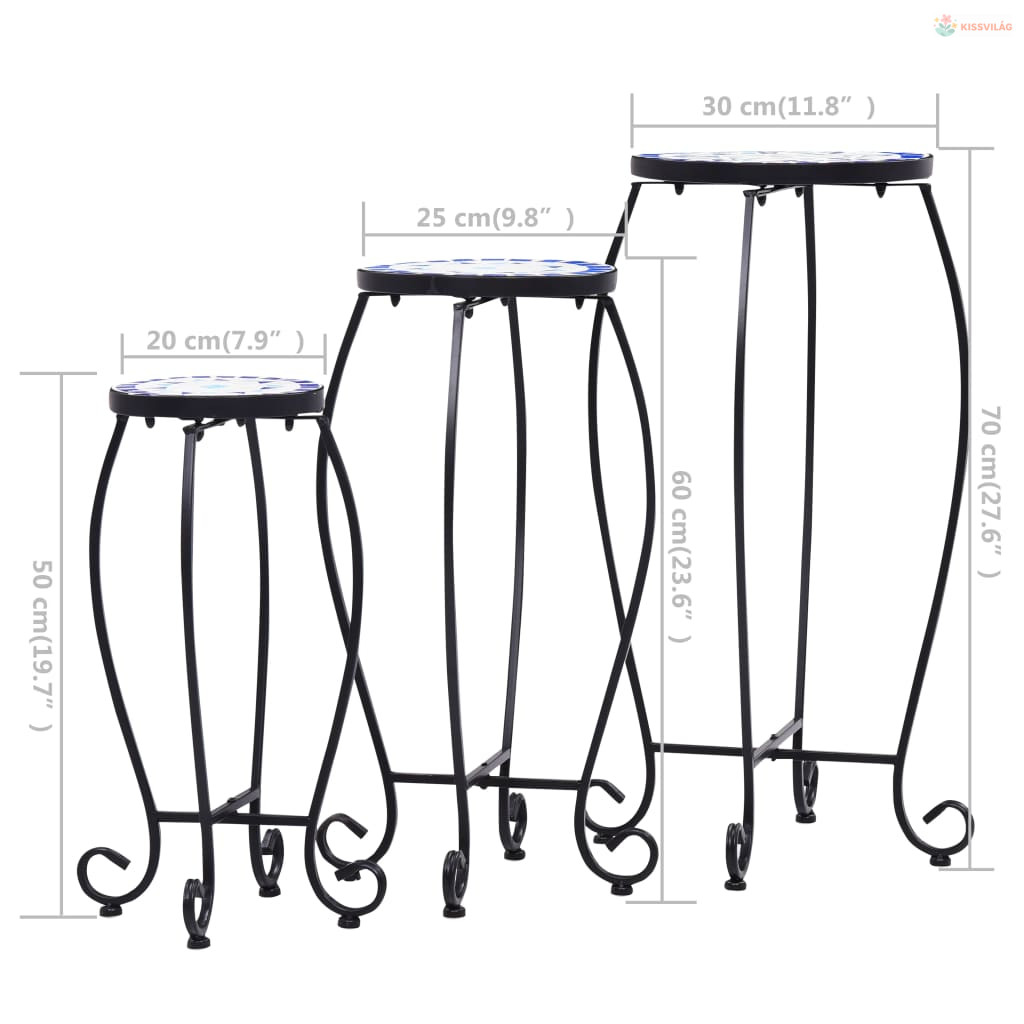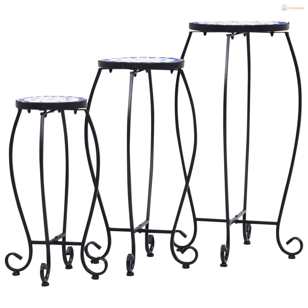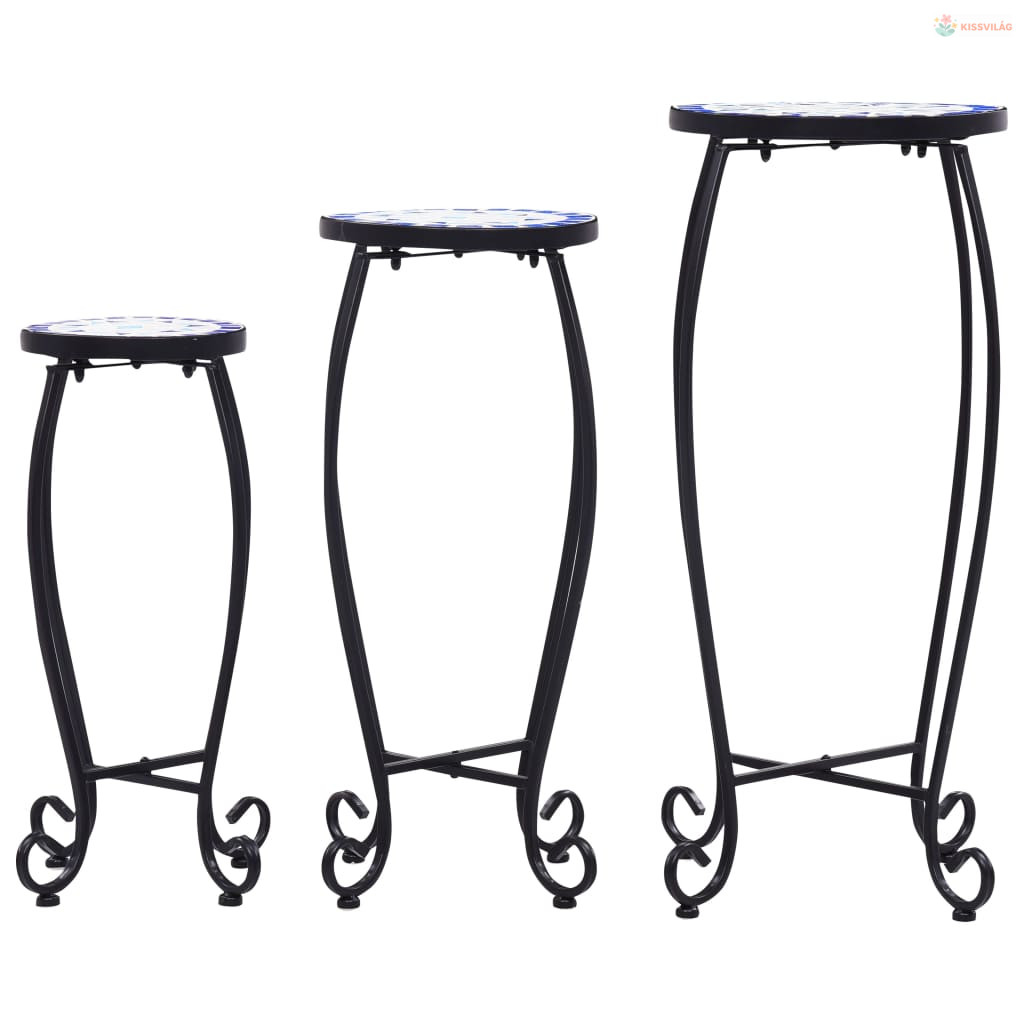 3 db kék és fehér kerámia mozaik asztal