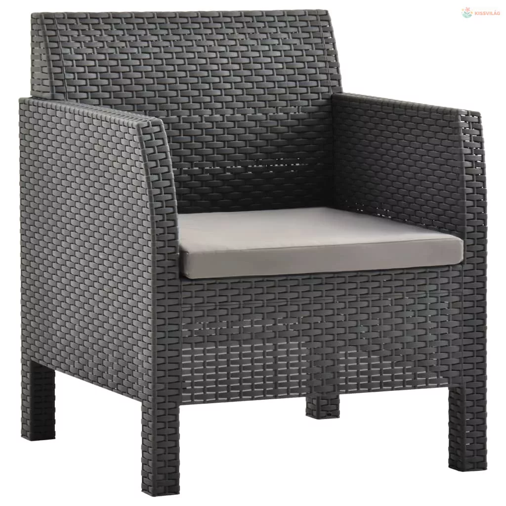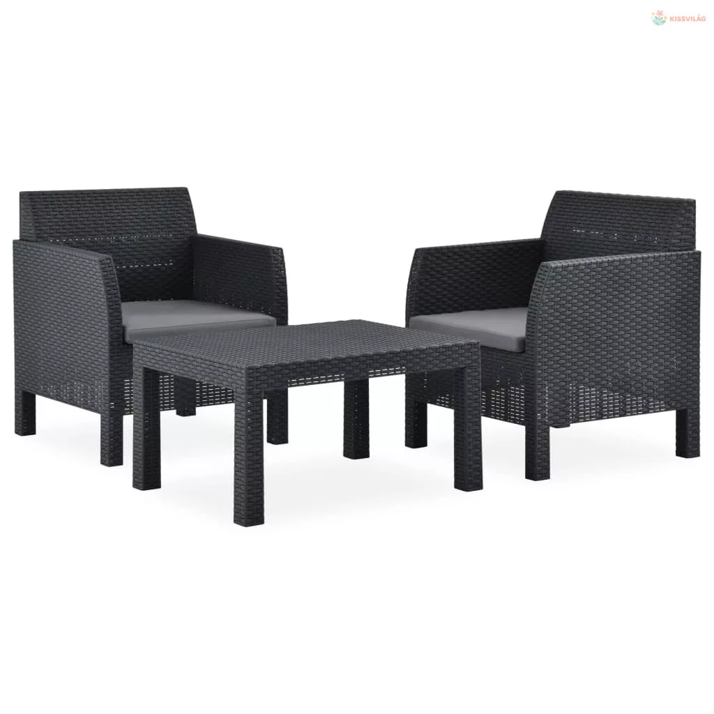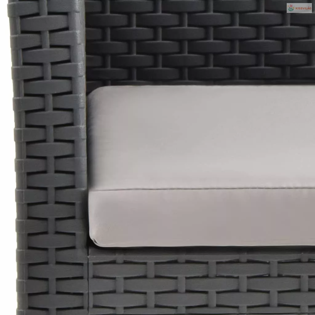3 részes antracit PP rattan kerti bútorgarnitúra párnákkal
