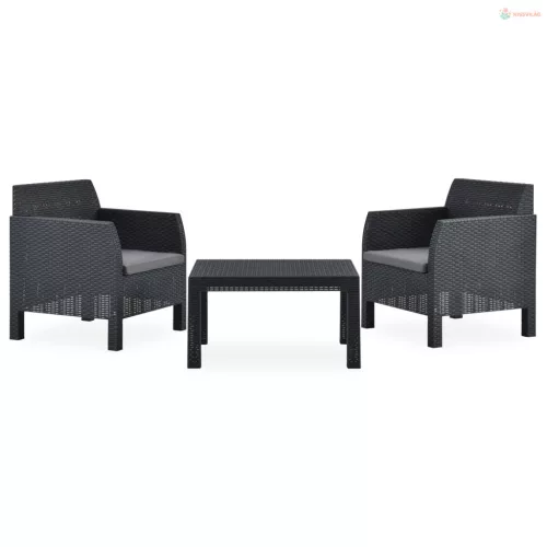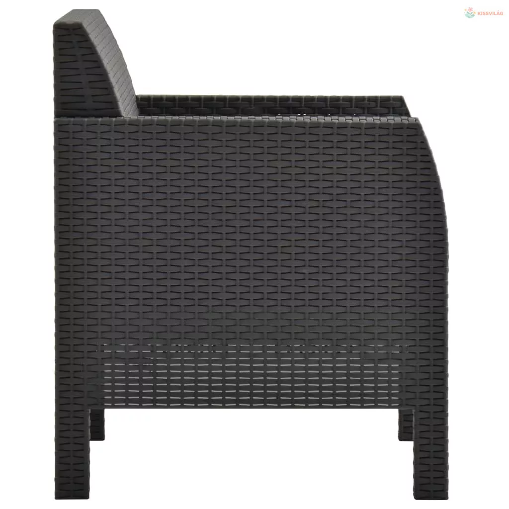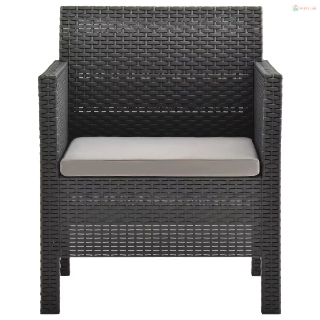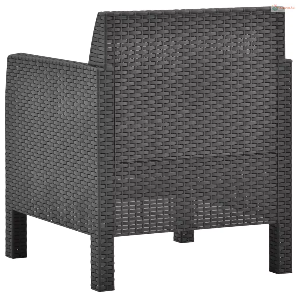 3 részes antracit PP rattan kerti bútorgarnitúra párnákkal
