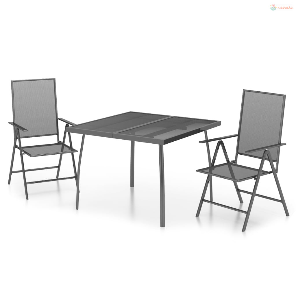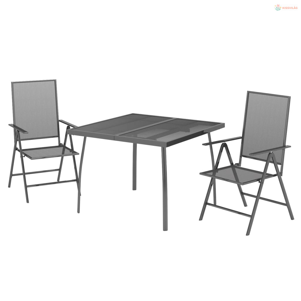 3 részes antracitszürke acél kerti étkezőgarnitúra