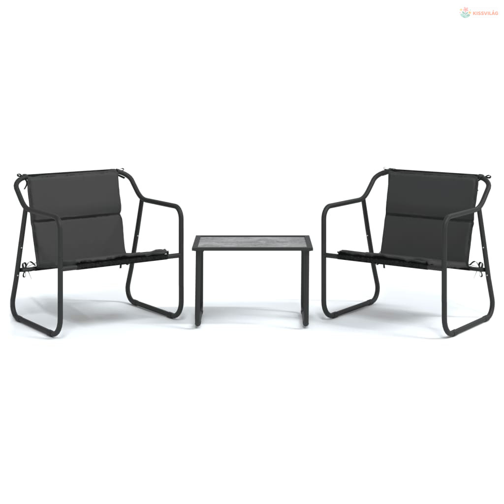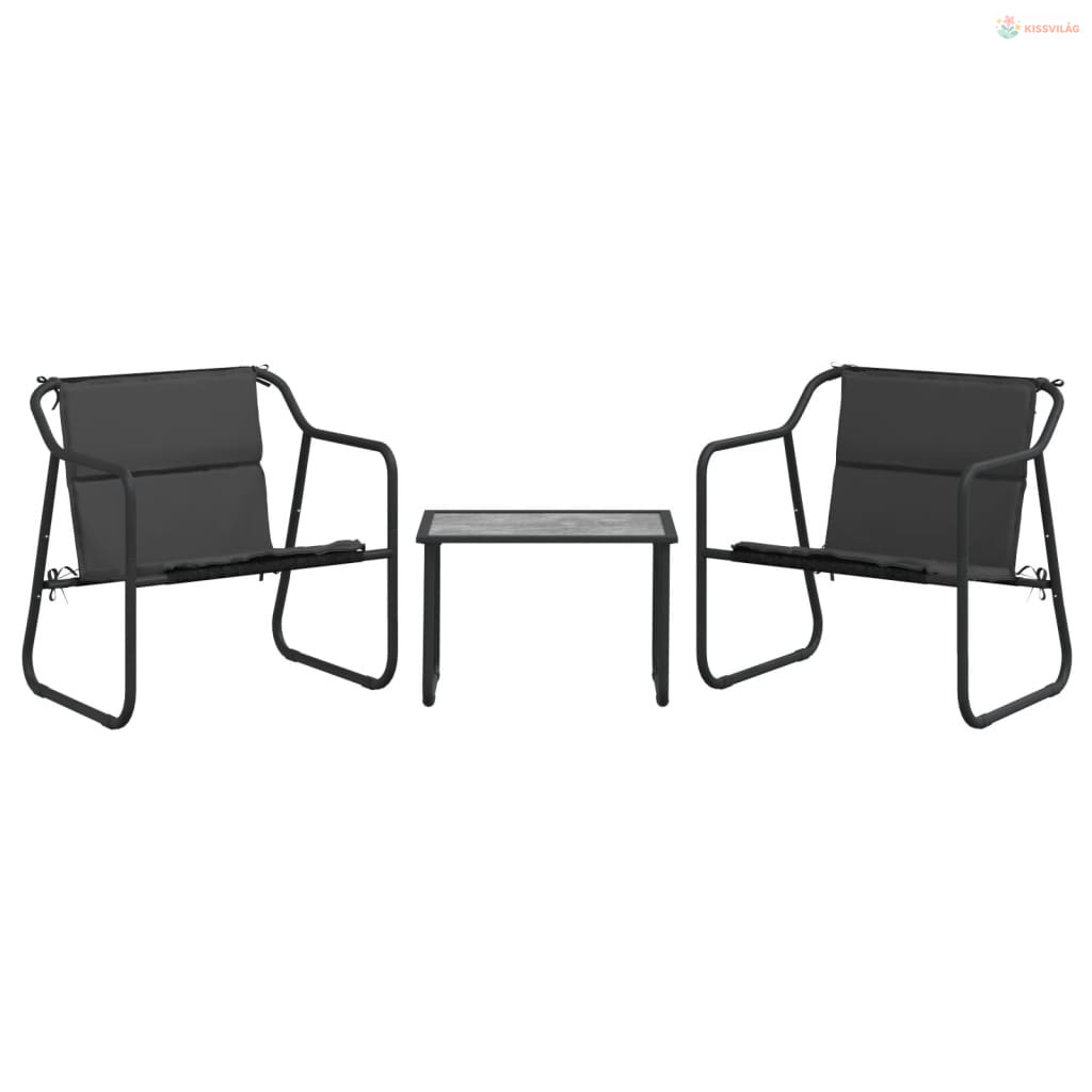 3 részes antracitszürke acél kerti ülőgarnitúra párnákkal
