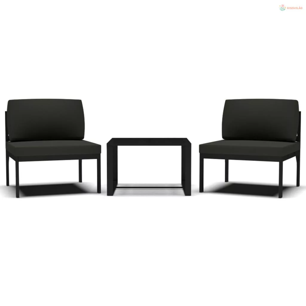 3 részes antracitszürke alumínium kerti kanapészett párnákkal