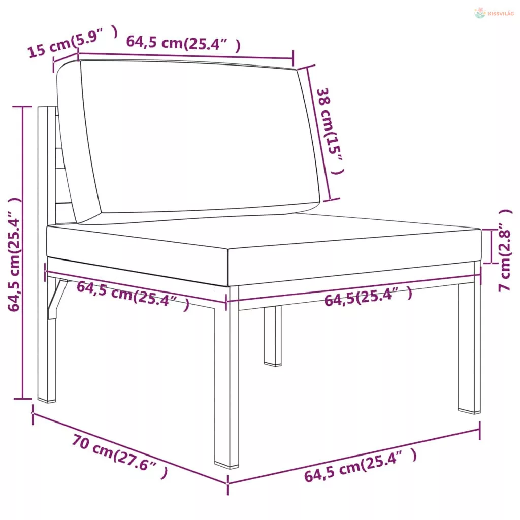 • Középső kanapé mérete: 64,5 x 70 x 64,5 cm (Szé x Mé x Ma)