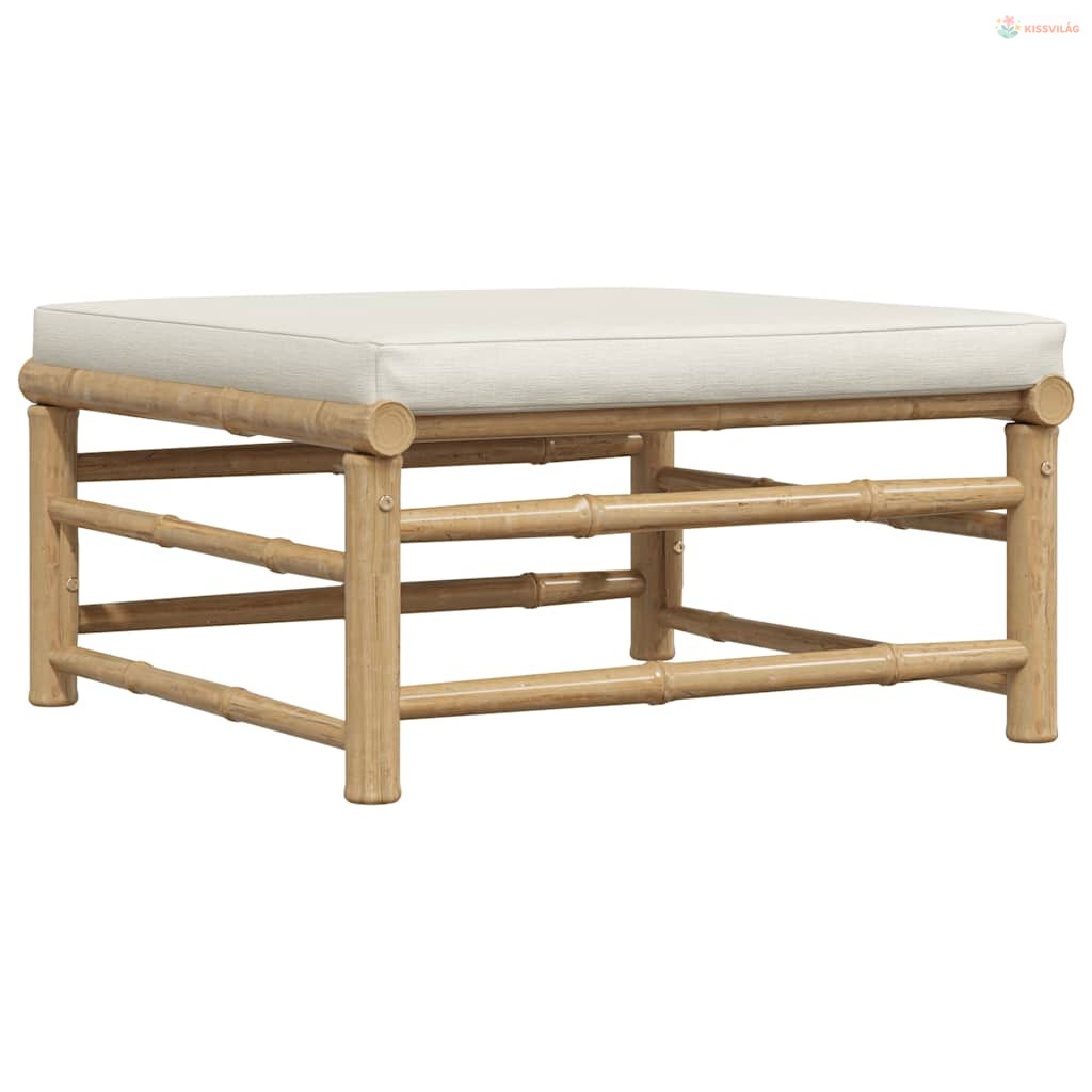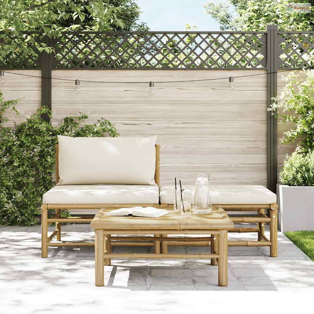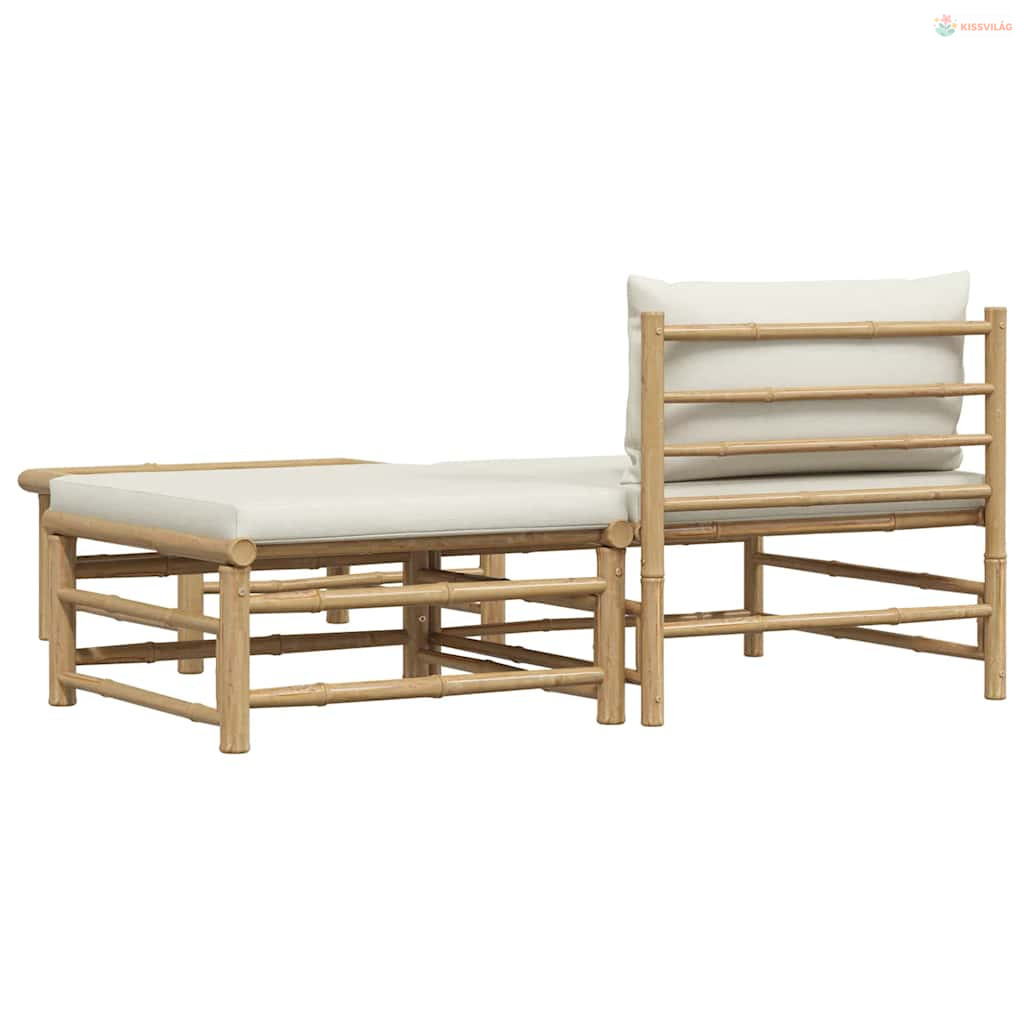 3 részes bambusz kerti bútorszett krémfehér párnákkal
