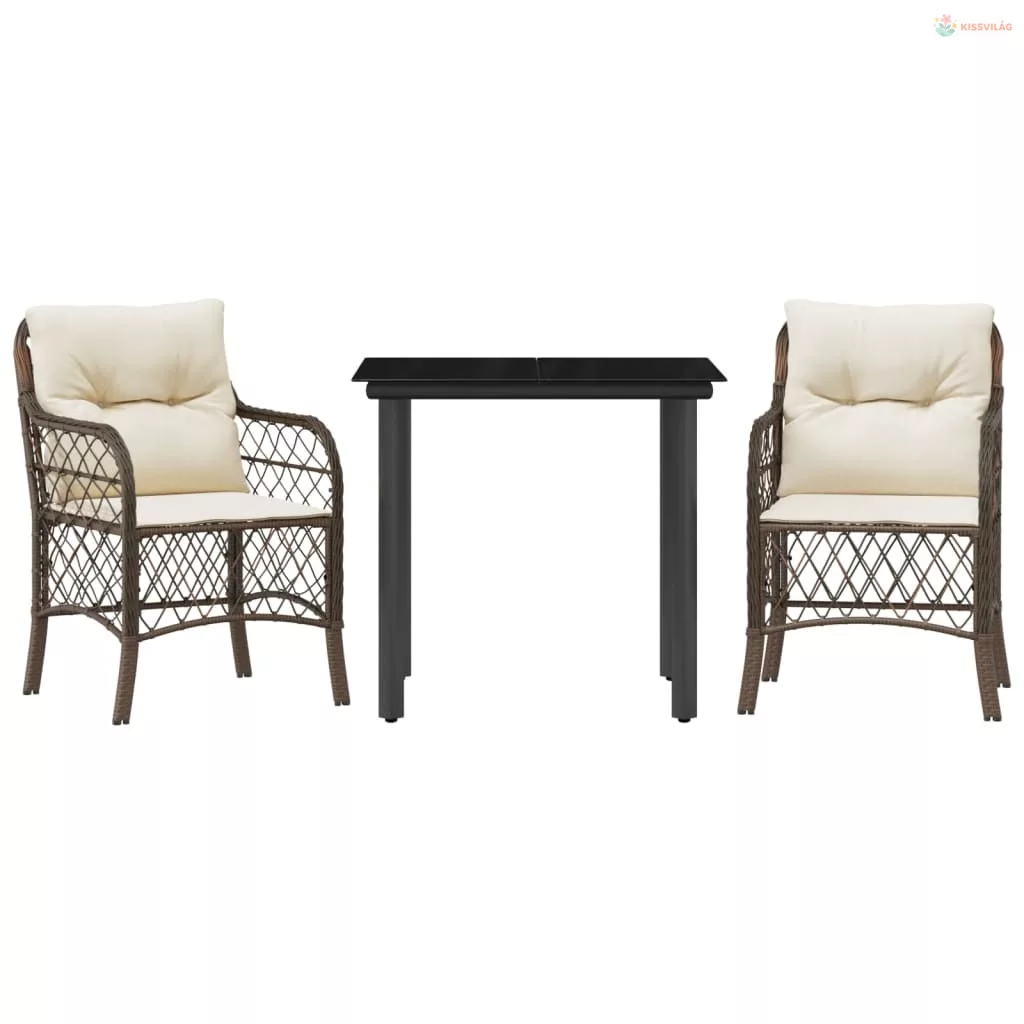 3 részes barna polyrattan bisztrógarnitúra párnákkal