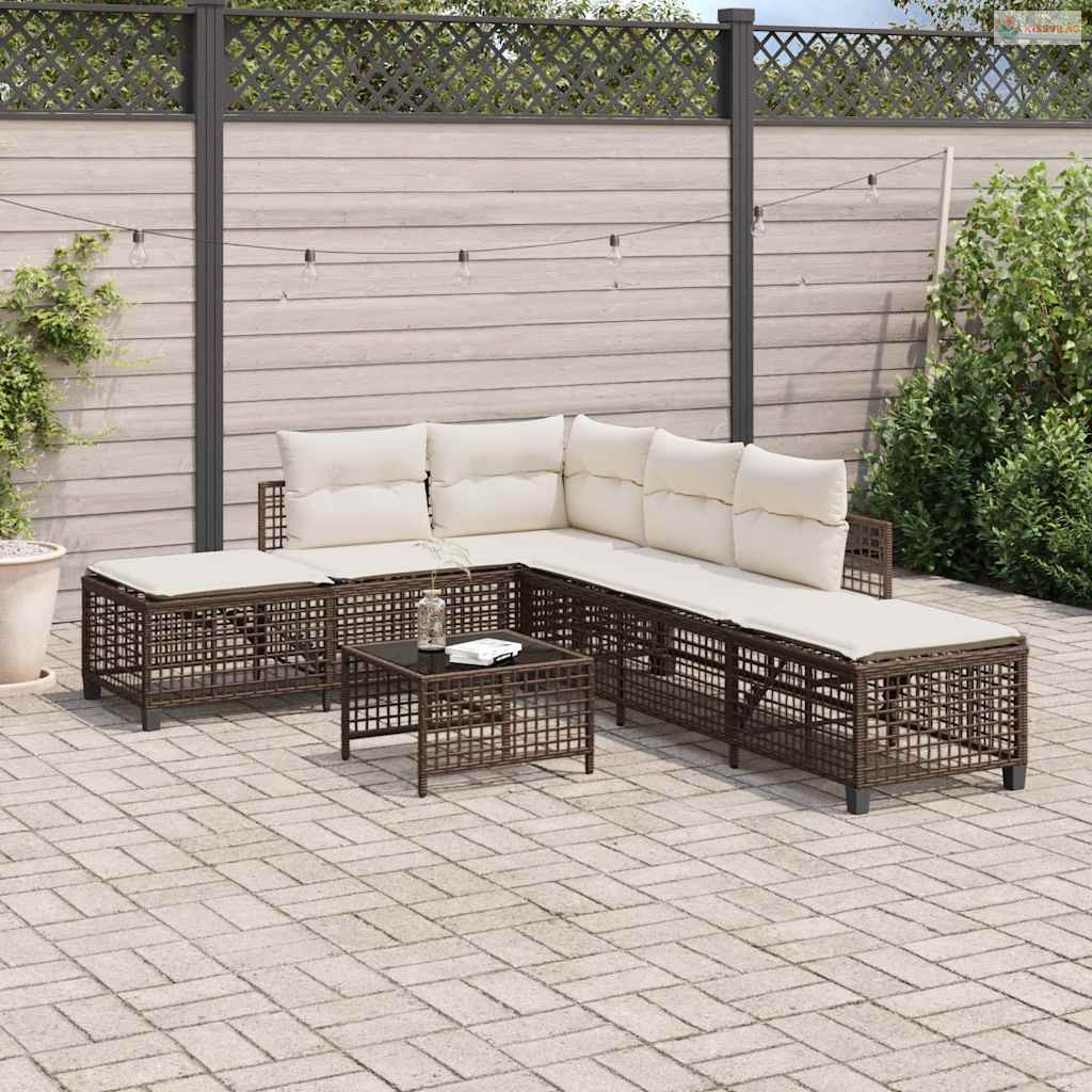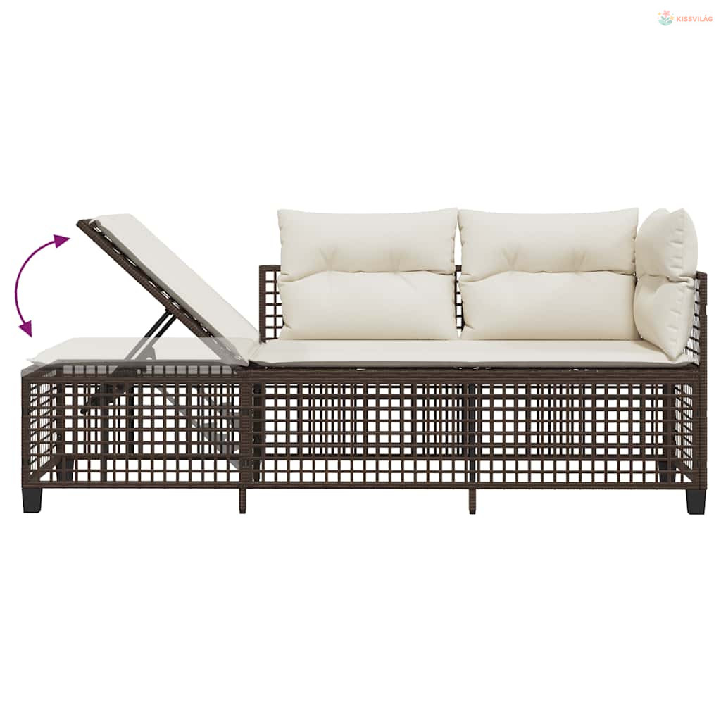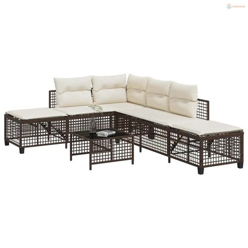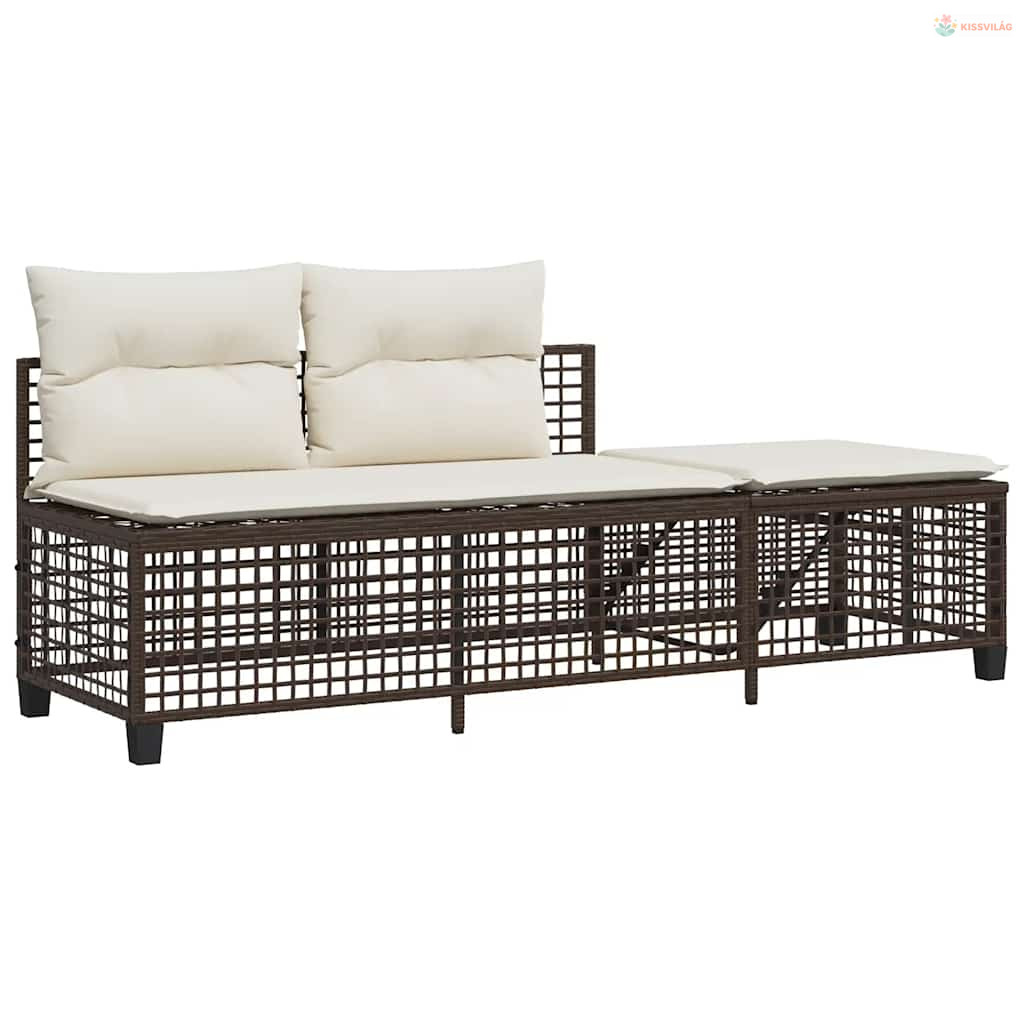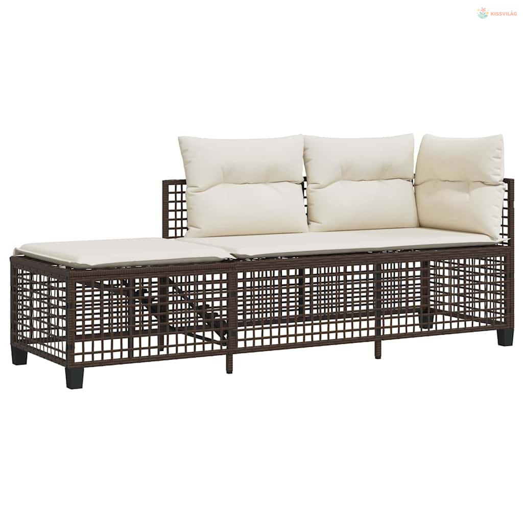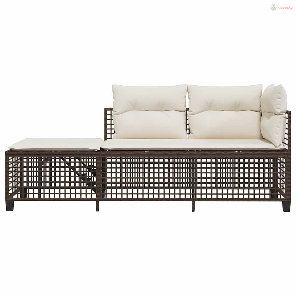 3 részes barna polyrattan kerti sarokkanapészett párnával