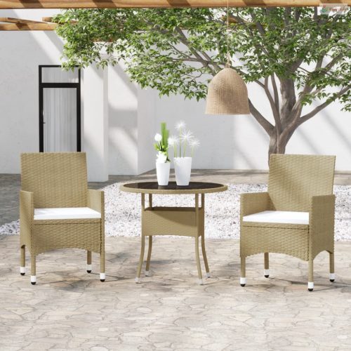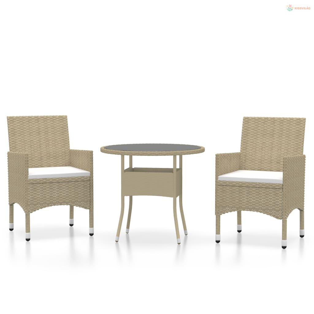 3 részes bézs kerti polyrattan étkezőgarnitúra