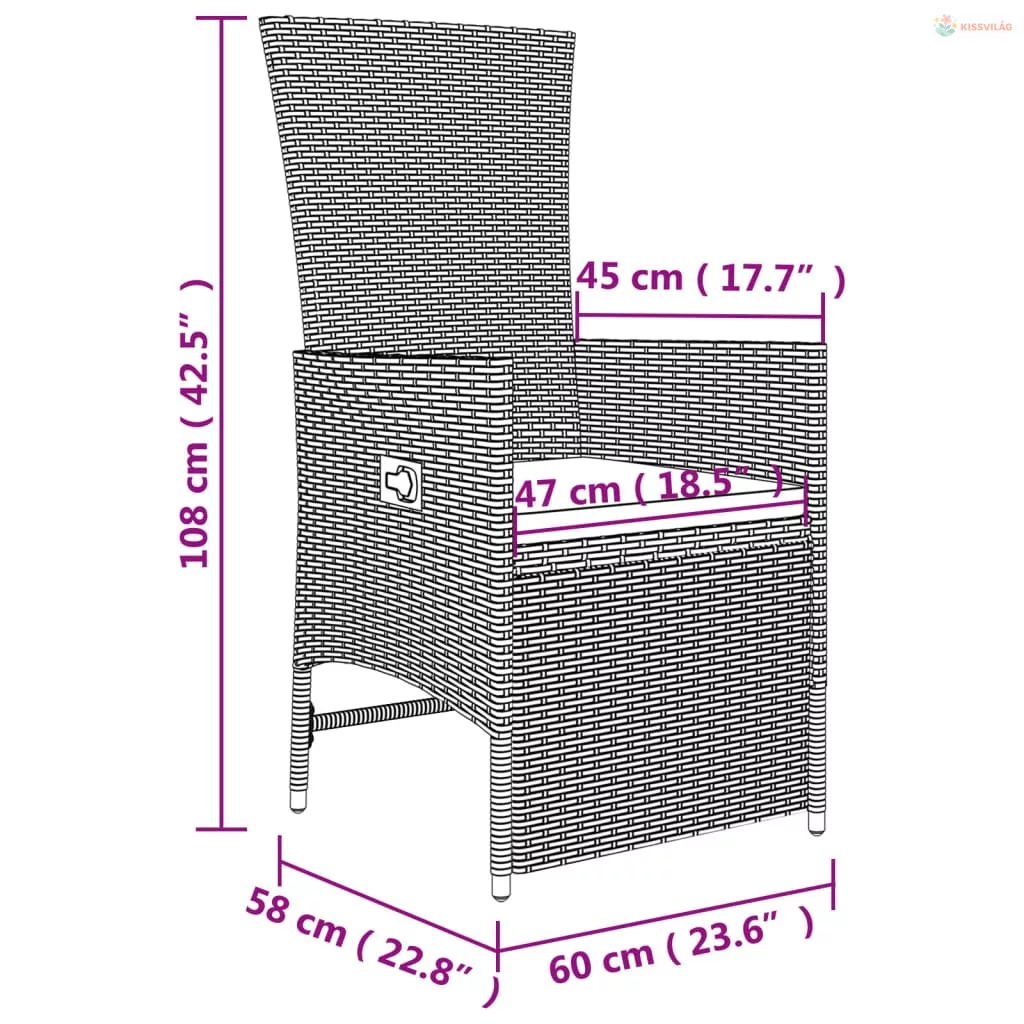 • Dönthető funkció: A kerti bútorkészlet székei dönthetők, így saját igénye szerint állíthatja be a háttámlát és a lábtartót.