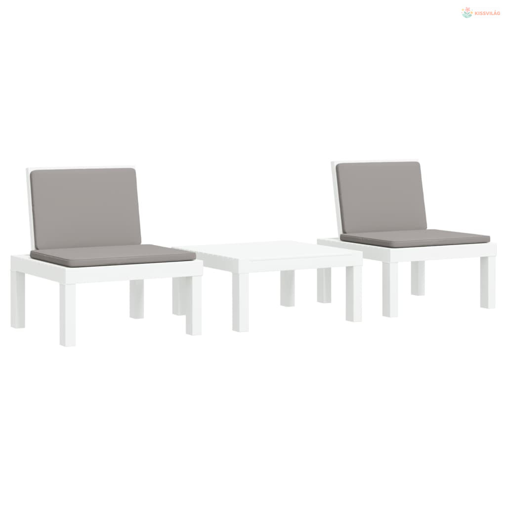 3 részes fehér polipropilén kerti ülőgarnitúra párnákkal