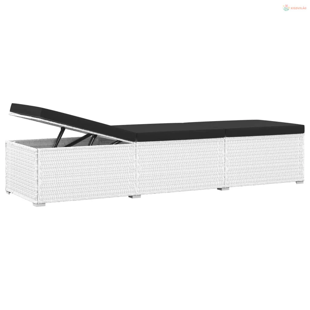 3 részes fehér polyrattan kerti napozóágy szett asztallal