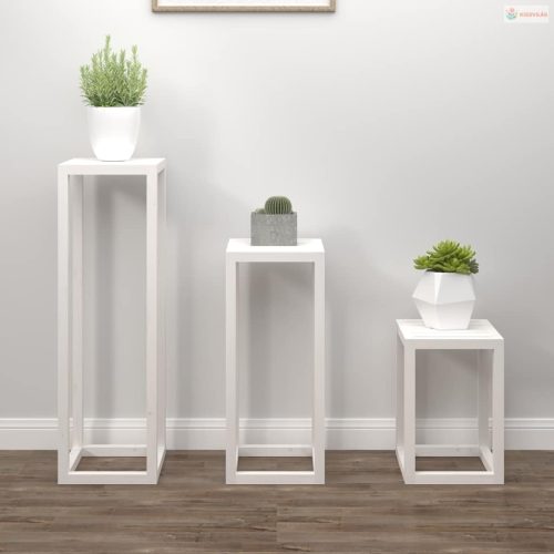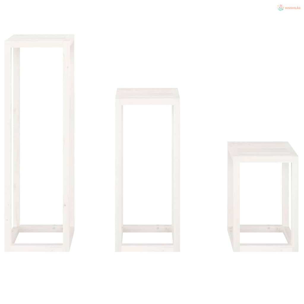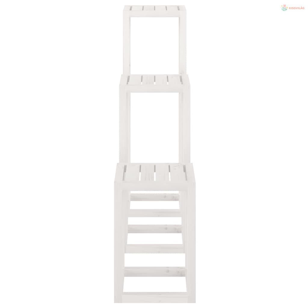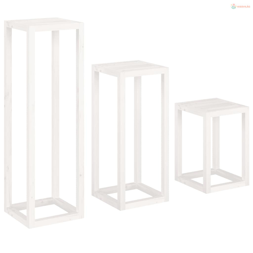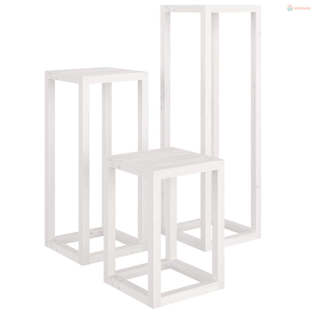 3 részes fehér tömör fenyőfa növénytartó éllvány szett