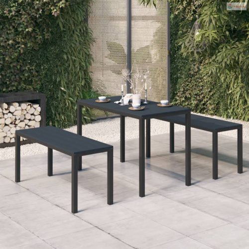 3 részes fekete acél és WPC kerti étkezőgarnitúra