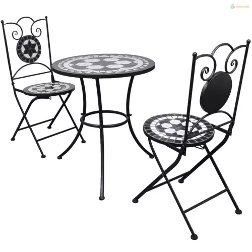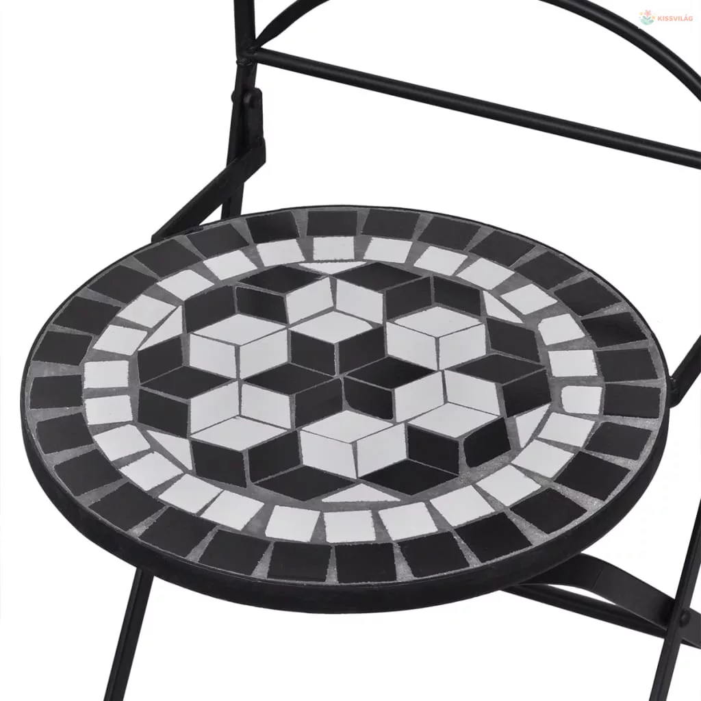 Erős porszórt vasvázának hála, a szett masszív és strapabíró. A vízálló kerámia csempe asztallapnak és üléseknek köszönhetően ez a szett könnyen tisztítható.