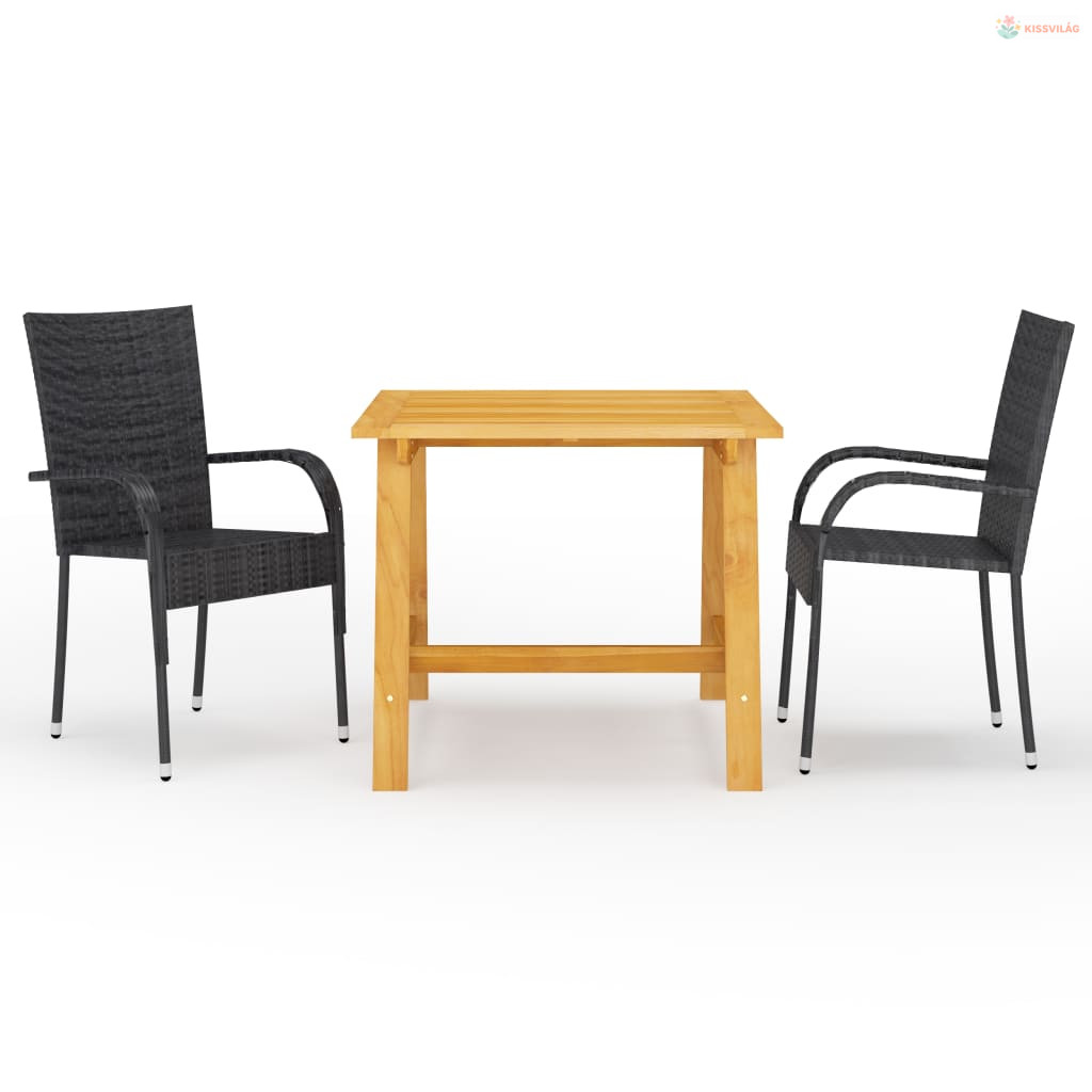 Az étkezőasztal olajbevonatú, tömör akácfából készült, így stabil, tartós és könnyen karbantartható. A porszórt acélváz időjárásálló polyrattan burkolattal lett ellátva, ezért az étkezőszékek strapabíróak, valamint könnyen tisztíthatóak. A kültéri székek könnyűek, így egyszerűen mozgathatóak, valamint használaton kívül egymásba rakhatóak.