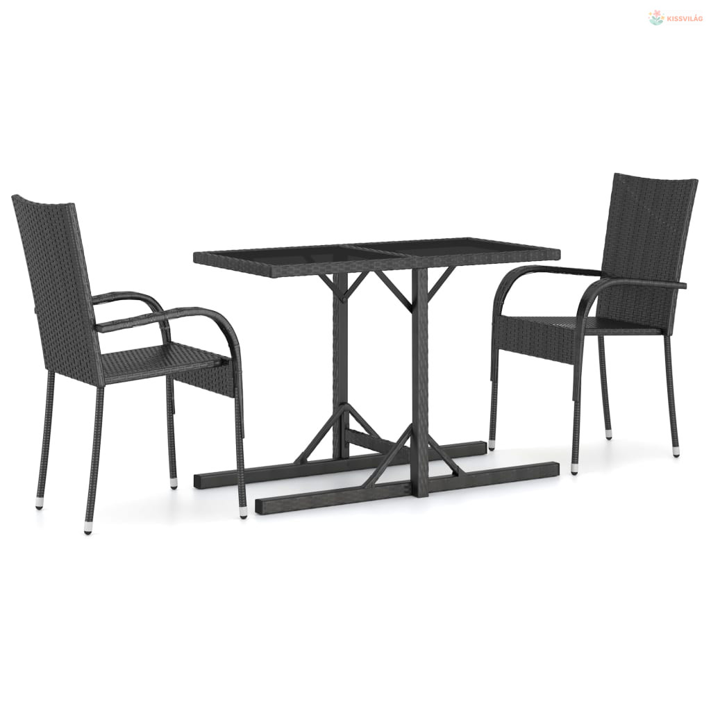 3 részes fekete kerti étkezőgarnitúra