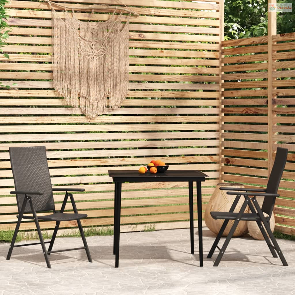 3 részes fekete kerti étkezőgarnitúra
