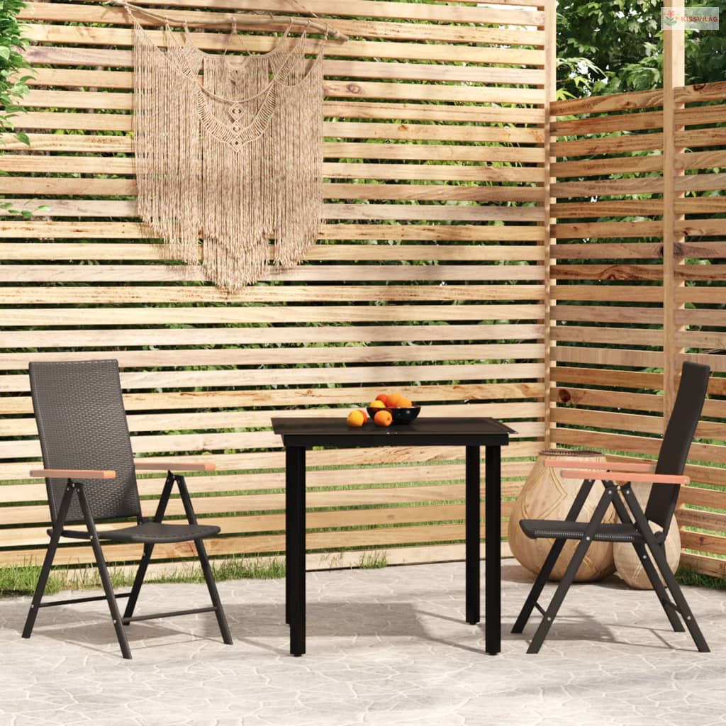 3 részes fekete kerti étkezőgarnitúra