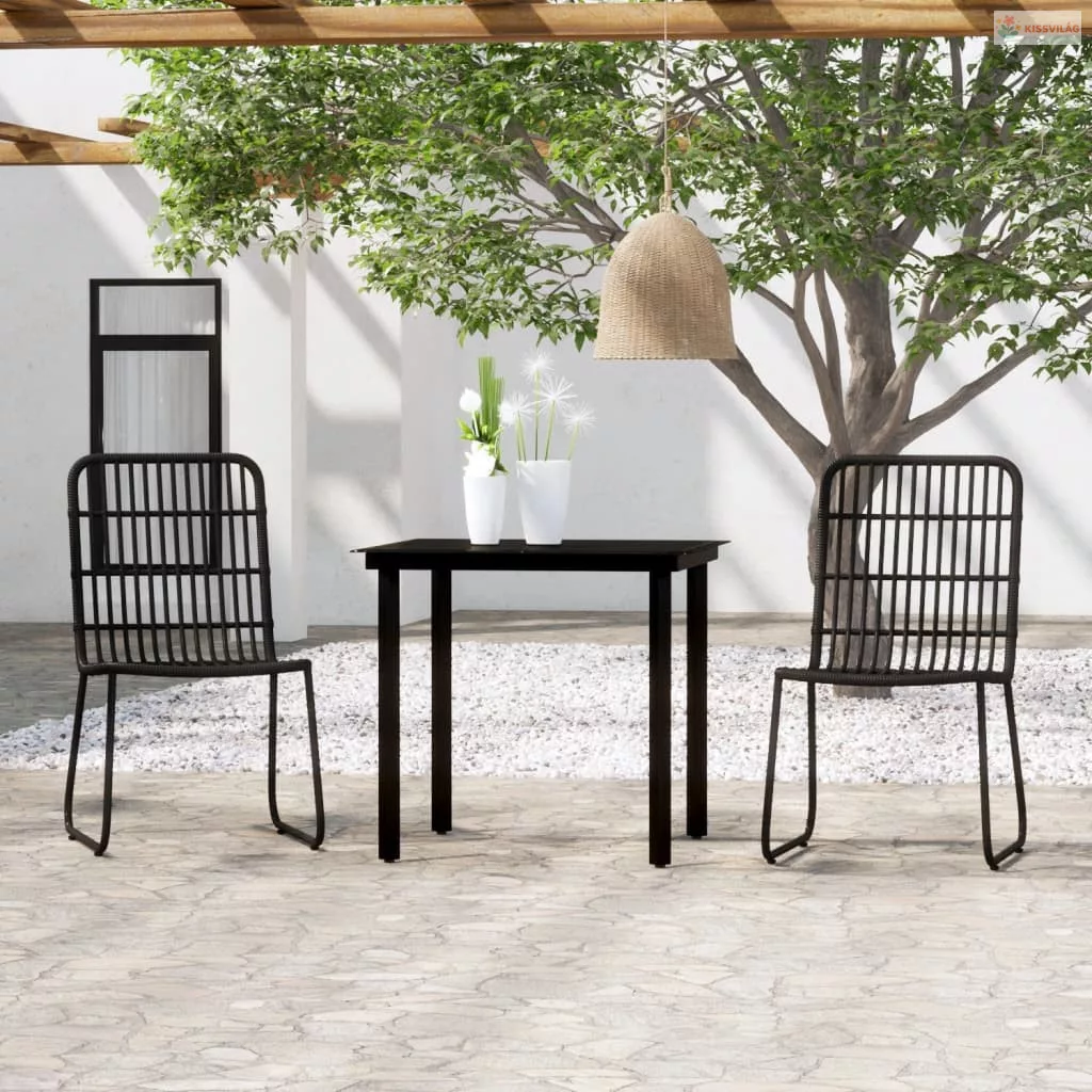 Az acélváz az asztalt és a székeket masszívvá és stabillá teszi. Mivel a készlet könnyű, minden elem könnyen mozgatható. Ráadásul a sima üveg asztallap nedves ruhával könnyen tisztítható, továbbá tökéletes az ételek, italok és egyéb dekorációs tárgyak elhelyezésére. A kerti székek PE-rattanból készültek, amely ellenáll a rossz időjárási viszonyoknak és az UV-sugaraknak. Emellett az ívelt háttámlák extra ülőkényelmet is biztosítanak a székek számára.