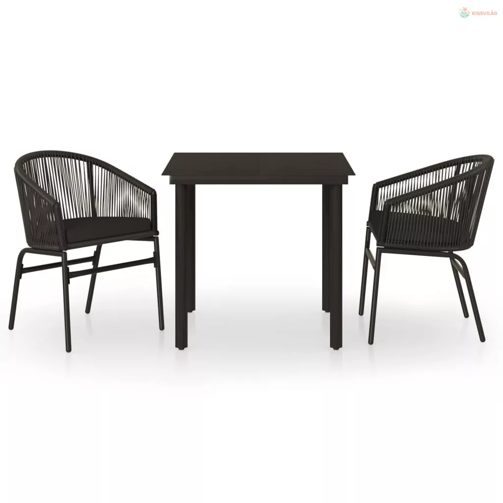 3 részes fekete kerti étkezőgarnitúra