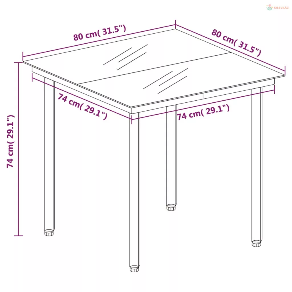• Mérete: 80 x 80 x 74 cm (Ho x Szé x Ma)