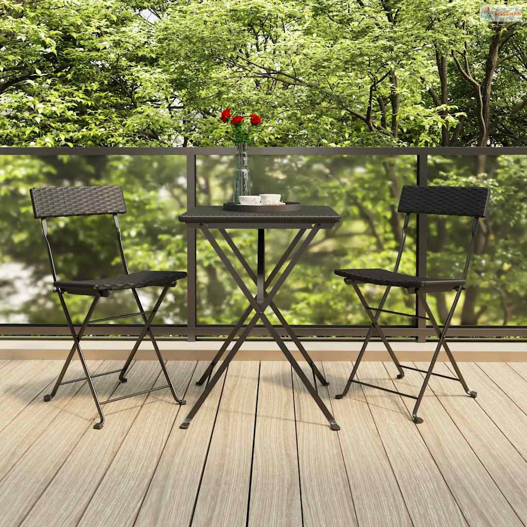 Ez az összecsukható, 3 részes bisztrószett polyrattanból készült, így kitűnő választás a kertben, erkélyen vagy udvaron történő étkezéshez vagy pihenéshez.