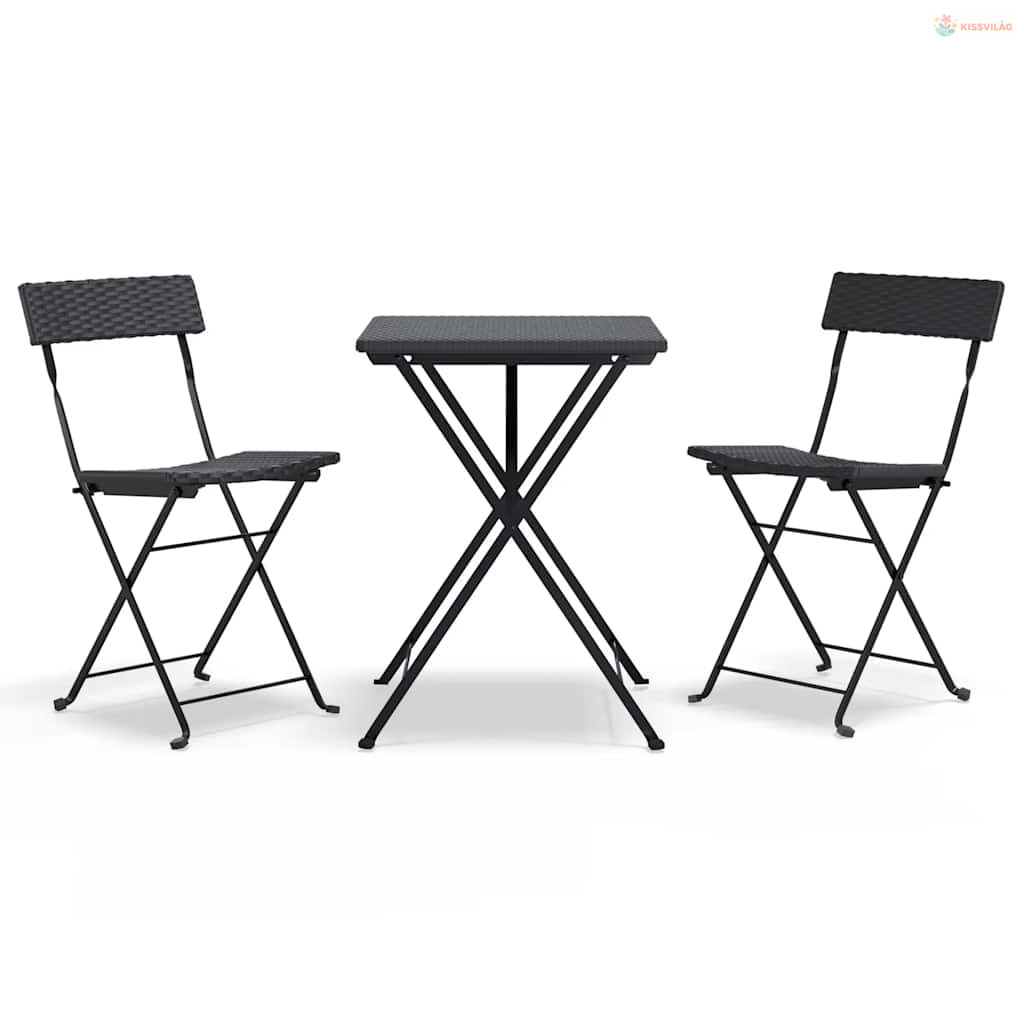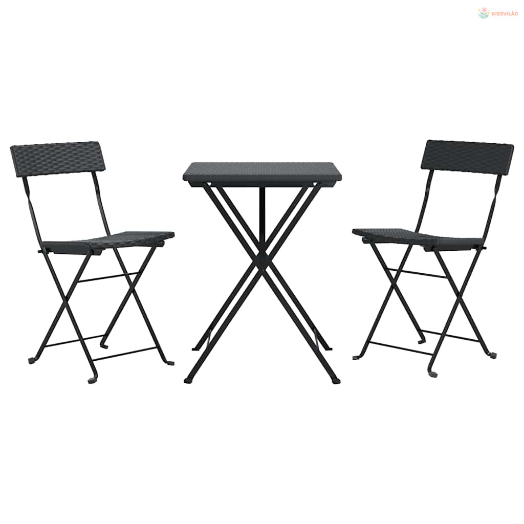 3 részes fekete összecsukható polyrattan bisztrószett