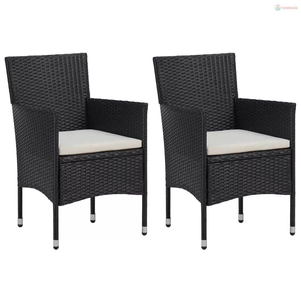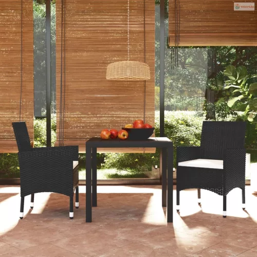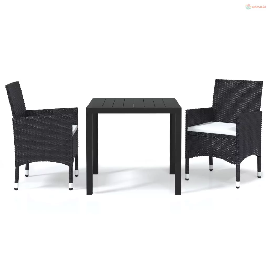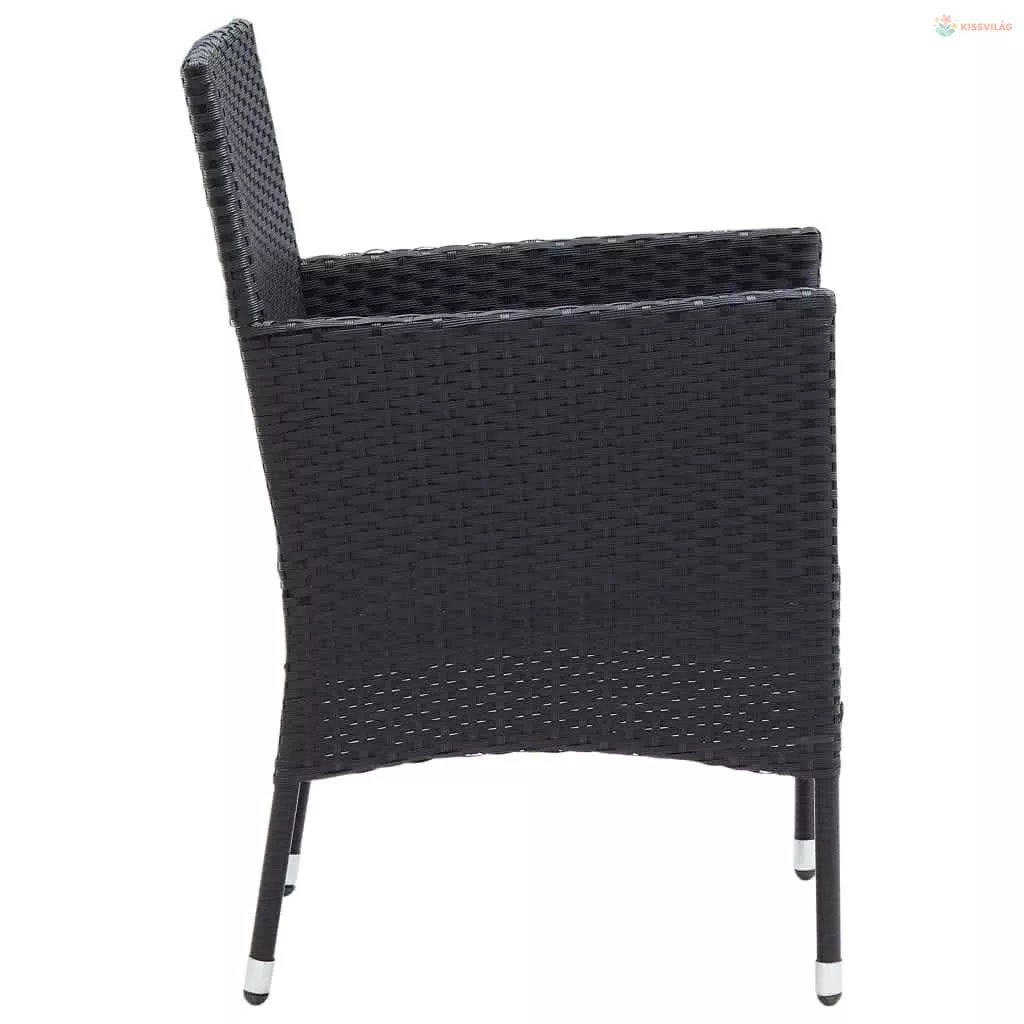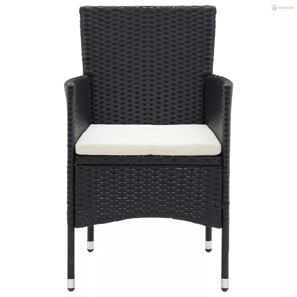 3 részes fekete polyrattan kerti étkezőgarnitúra párnákkal