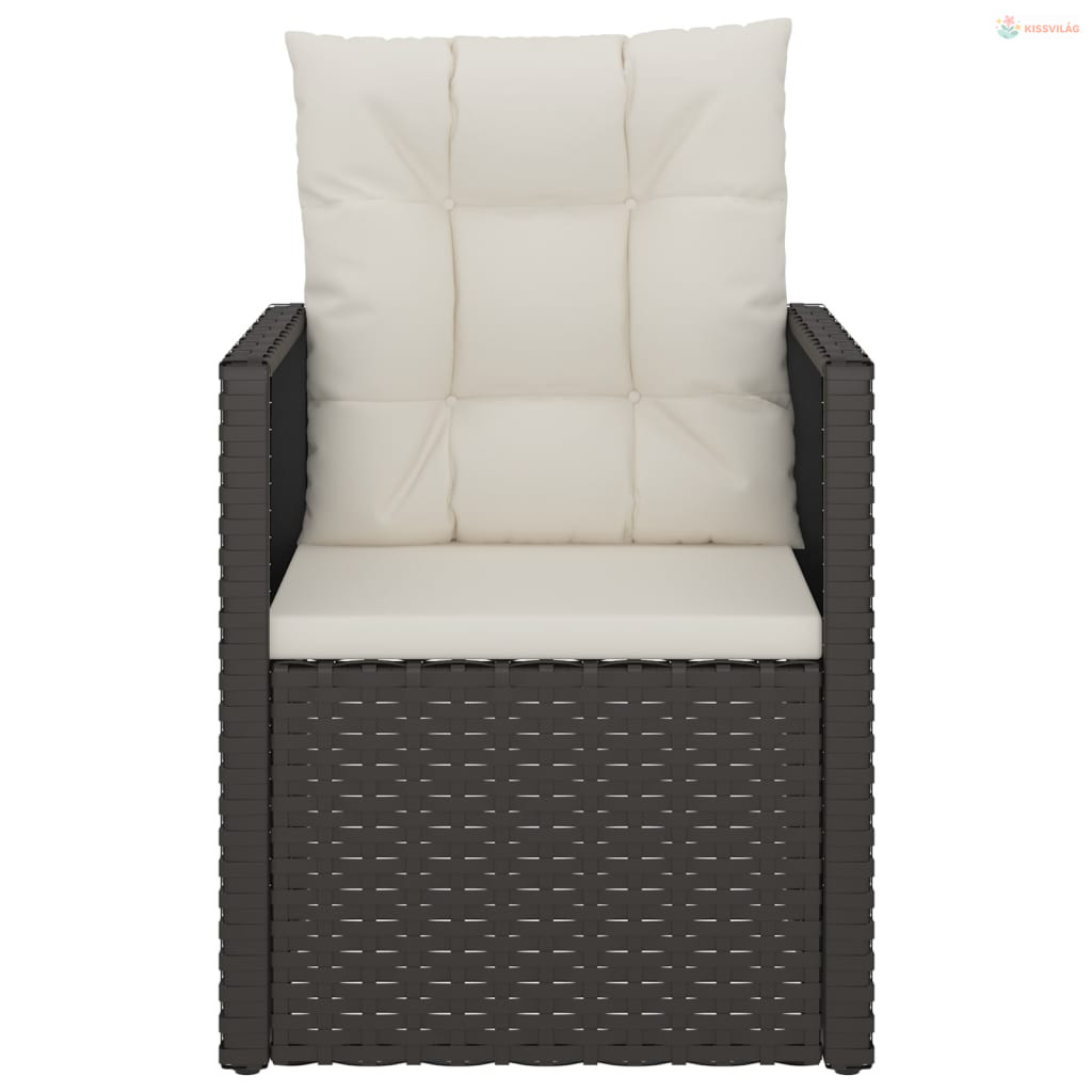 3 részes fekete polyrattan kültéri ülőgarnitúra párnákkal