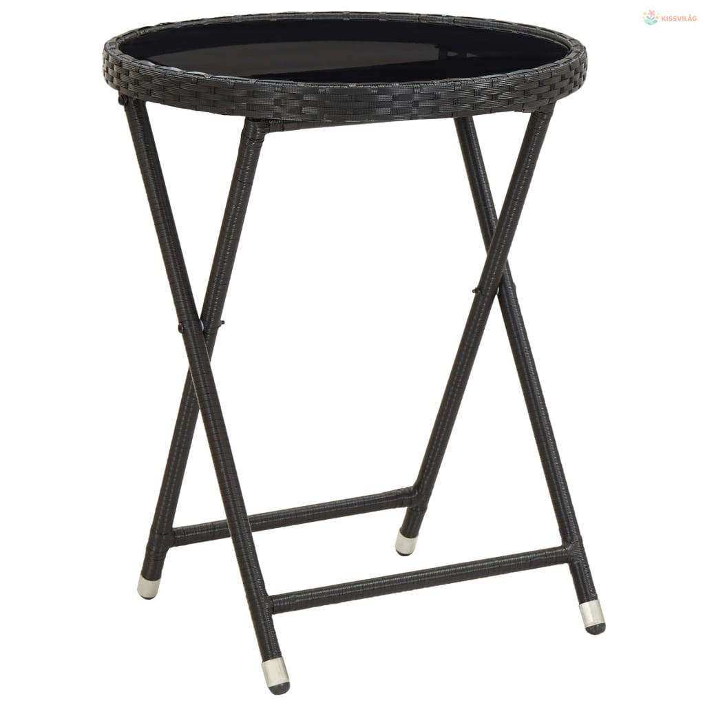 3 részes fekete polyrattan/üveg bisztrógarnitúra párnával