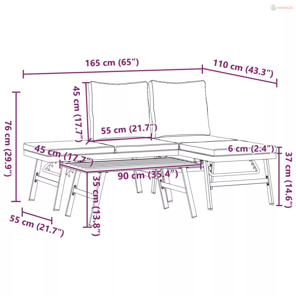 • Ülőfelület mérete: 110 x 55 cm (Szé x Mé)