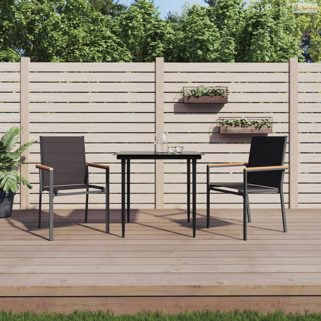 3 részes fekete textilén és acél kerti pihenőgarnitúra