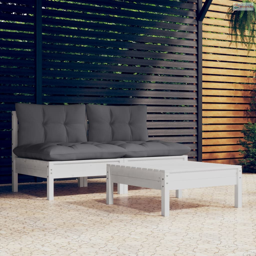 3 részes fenyőfa kerti ülőgarnitúra antracitszürke párnákkal