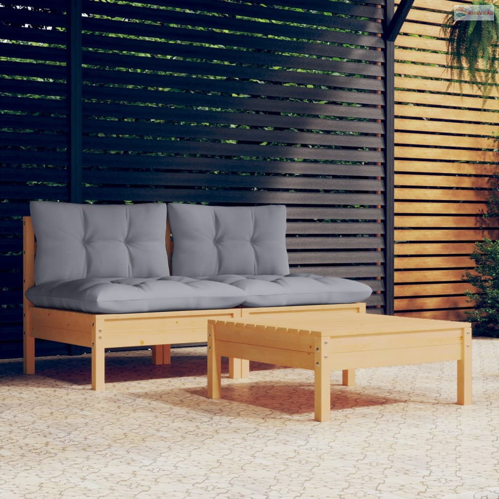 3 részes kerti ülőgarnitúra szürke párnákkal